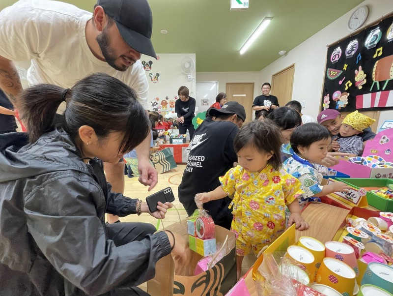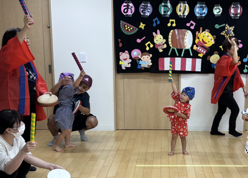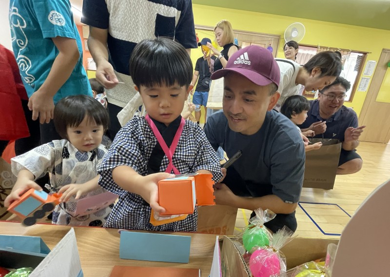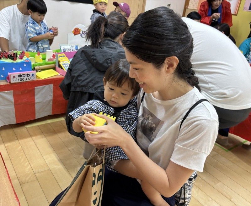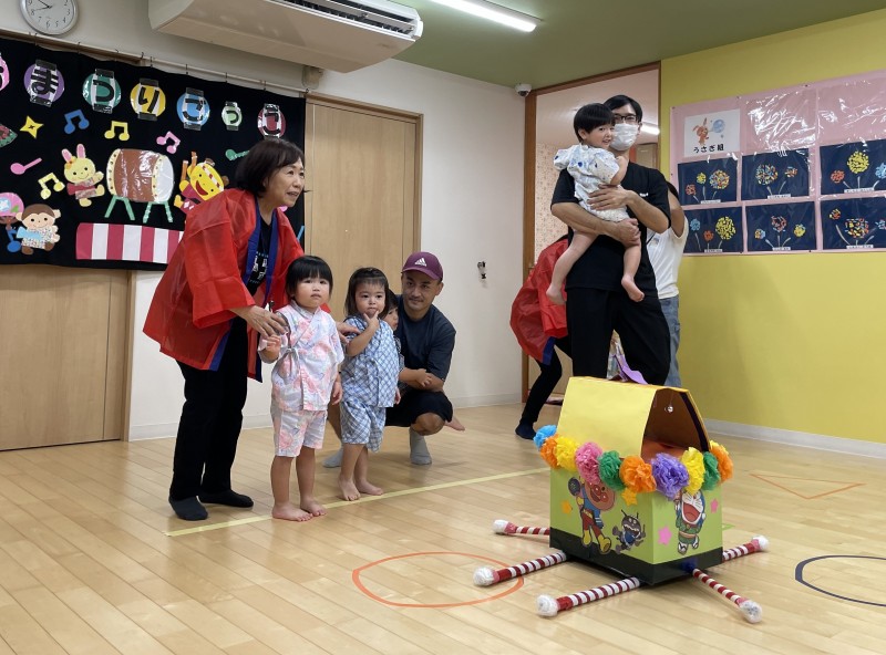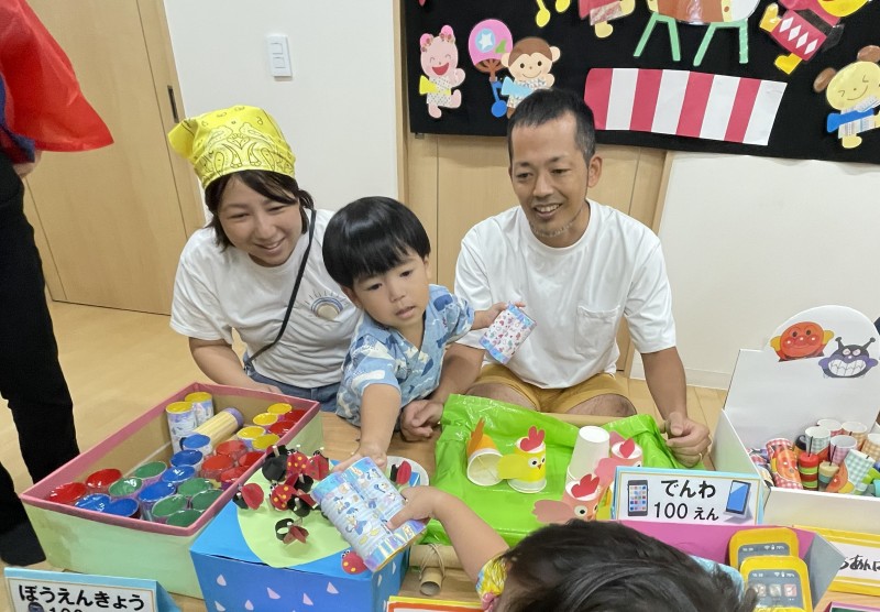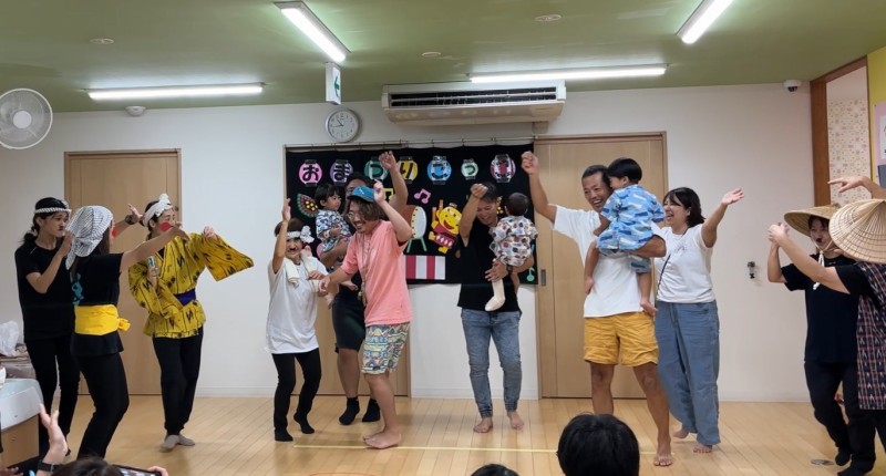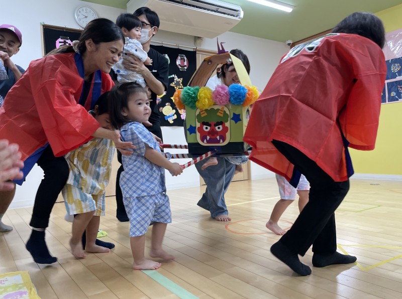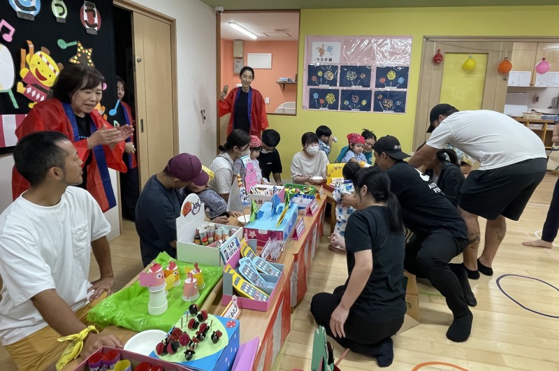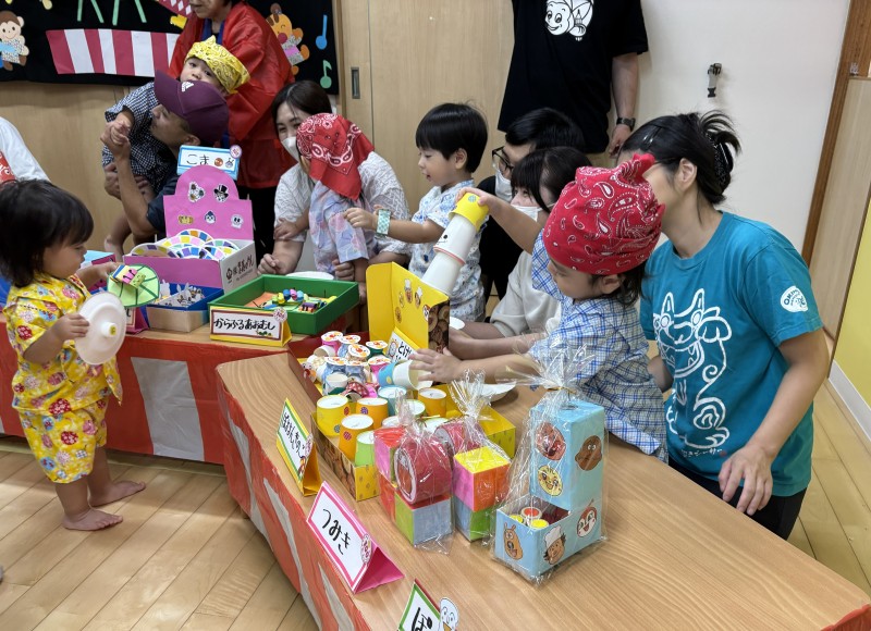 イベント 日付:2025.10.10 🌟お祭りごっこ🌟 今日は、保護者をお招きし、お祭りごっこを行いました お祭りごっこのオープニングでは、うさぎ組さんのお神輿✨「わっしょいわっしょい」皆で力を合わせて頑張りました エイサーを披露したり、お父さんやお母さんと一緒にお買い物、ボウリングや虫取りなどのゲームに参加しました また、職員の出し物では、お父さん&お母さんも一緒に参加しカチャーシーを踊り皆で楽しむ事ができました~