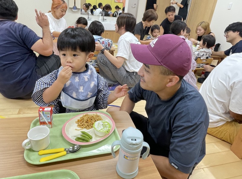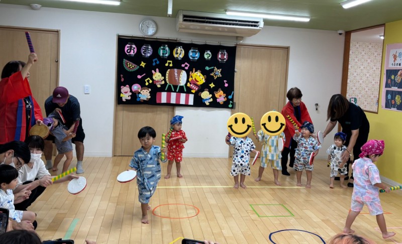 イベント 日付:2025.09.12 🌺敬老会(お招き会)🌺 今日は、うさぎ組さんの祖父母を保育園にお招きして、敬老会を行いました 大好きなおじいちゃん、おばあちゃんが保育園に来てくれたという事で、張り切っている子どもたち 敬老会では、「スイカの名産地」「みずあそび」などの歌を元気に歌ったり、お遊戯やお神輿、エイサーを披露しました