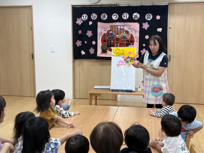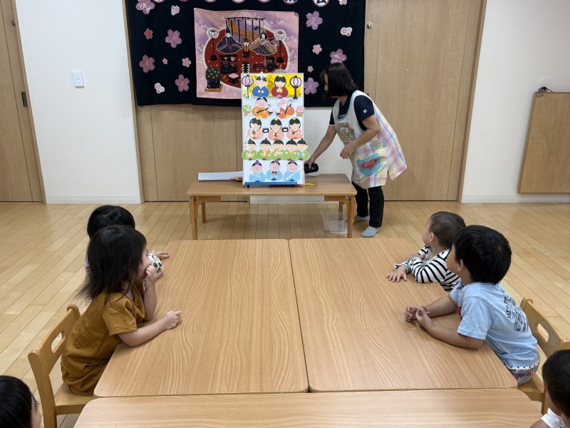 イベント 日付:2026.03.03 🌸ひな祭り集会🌸 今日は、3月3日、ひな祭り🎎 ひな祭り集会に参加し、ひな祭りの歌を歌ったり、スケッチブックシアターやパネルシアターで由来のお話を聞き雰囲気を楽しみました♪ 集会の最後は、みんなでひなあられをいただき、「お花の形だね~🌸」「おいしいね~」とにっこり笑顔の子どもたちでした
