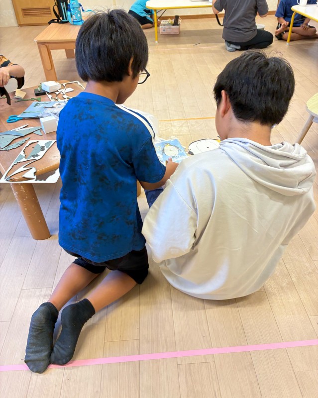 その他 日付:2025.12.15 夏の様子③🍉 おやつ作りをしました❣ 粉からこねてクッキーの形も自由に作っています✨ 大作制作中!!!😄 可愛い💜素敵なクッキーがたくさんできました。 クッキーの焼きあがった良い匂いで、「早く食べたい!!」喜んでいました😊 学習の様子✏ 平日、amに来たらまずは宿題からしています。 amまつりの出品作品制作中🔧 公園にて虫とり🐞🐛 カマキリのごはんをゲットするぞ!!