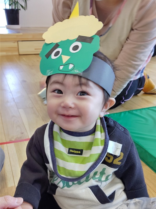 お面を被って集合です!!朝から「鬼さんはどこにいるかな?どこからくるの?」とドキドキしているお子さんもいました![]()