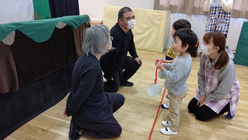 とっても真剣に子どもたちは見ていました。笑いあり、歌ありで40分ほどの時間じっくりと集中していた姿に感動![]()