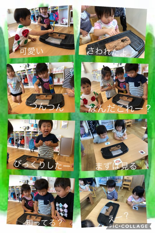 カブトムシで慣れたのか、積極的に触ってみたり、