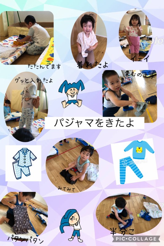脱いだものを畳んだり、着替えやすいように、袖をなおしたり、畳んだものを両手でポンポンと押したり、可愛いぞう組さんでした~❕