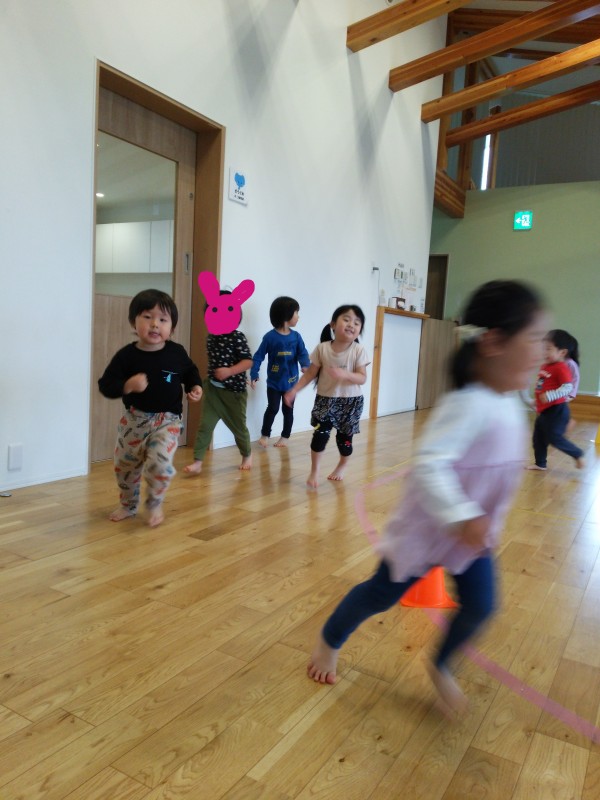 広いホールでは、みんなで走りっこやサーキット遊びを楽しんでいます![]()