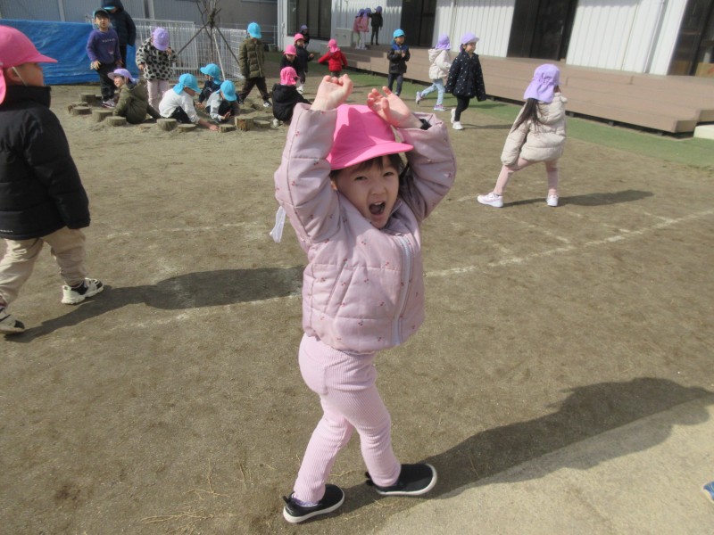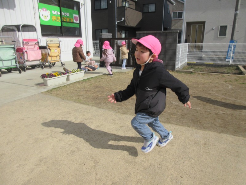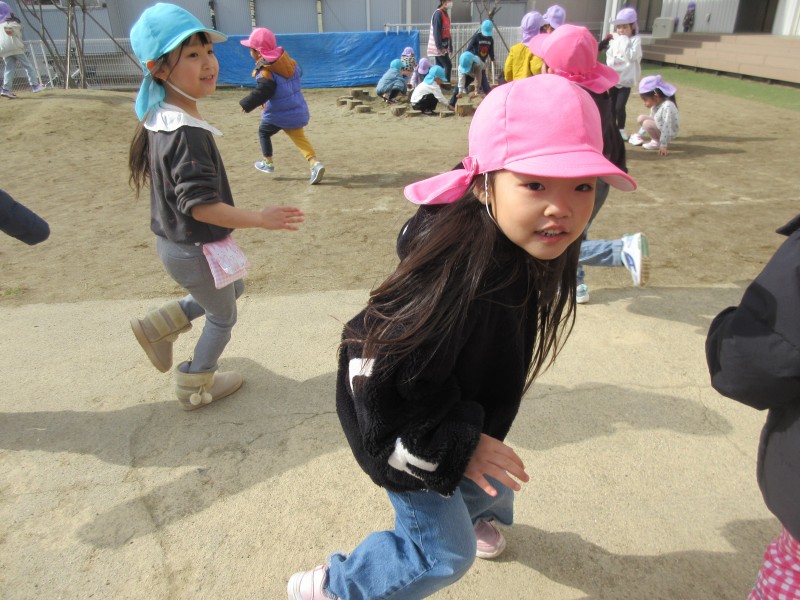 外遊びの恒例、鬼ごっこ!!みんな良い顔で走ってますね~😆