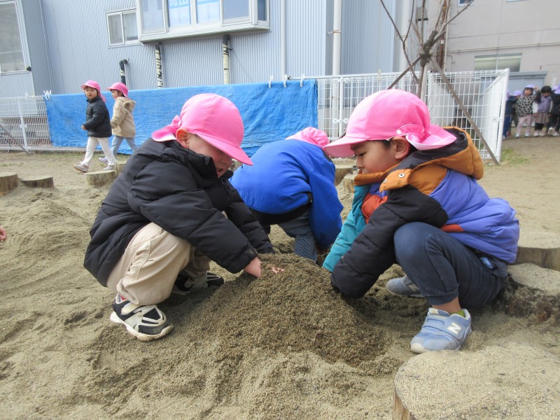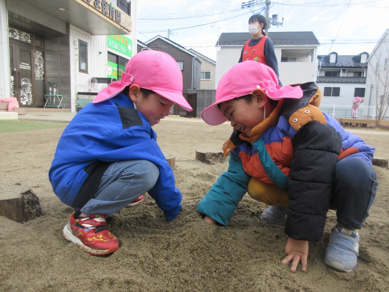 こちらは外遊びです!「ここらへんにいそうじゃない?」
