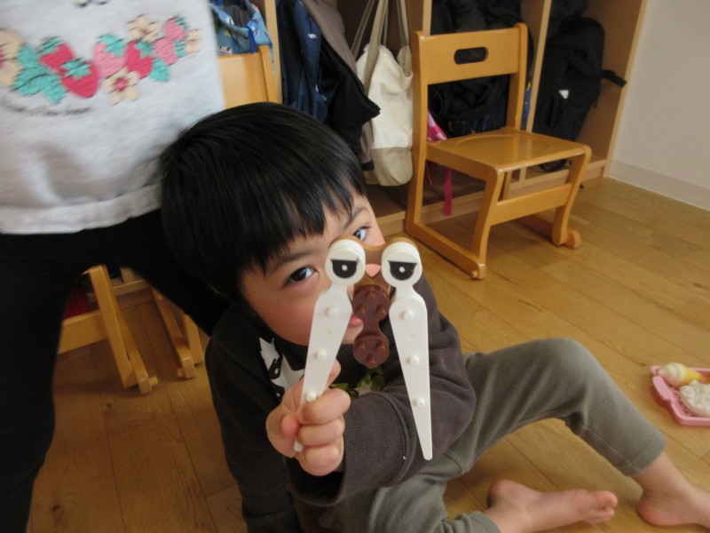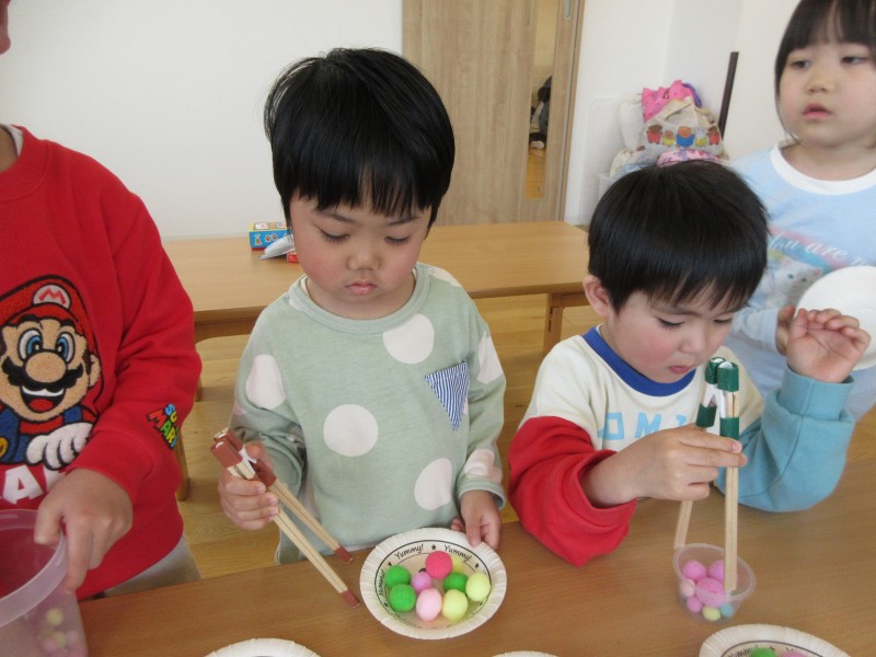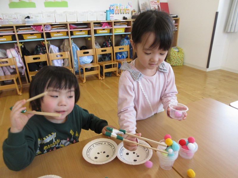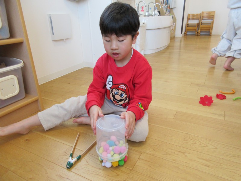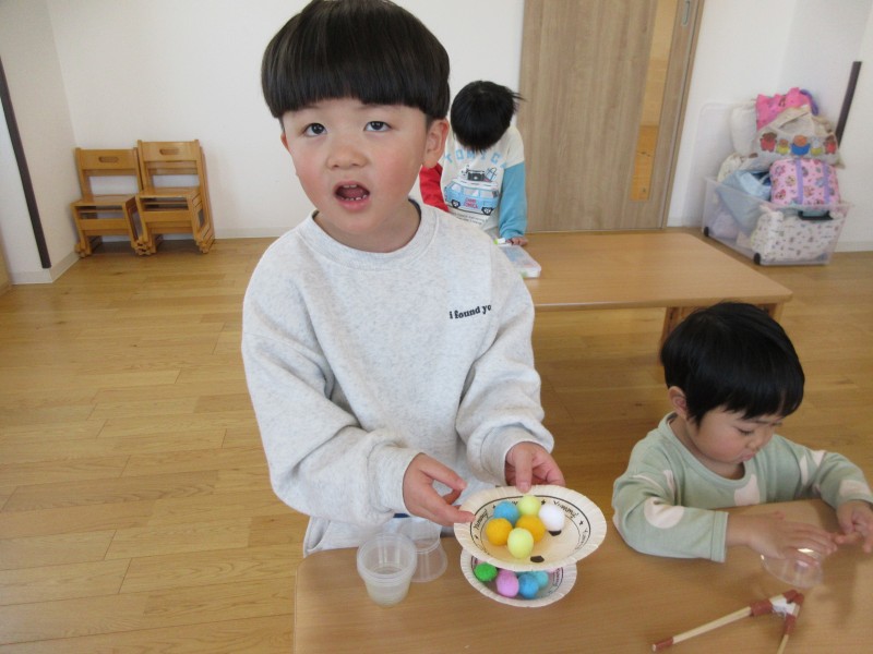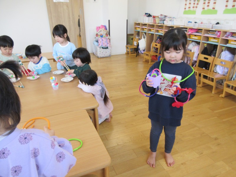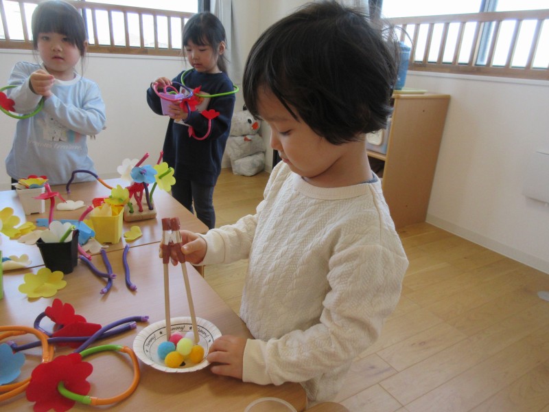 月の後半には、微細遊びの中でお箸の玩具で遊んでみました!