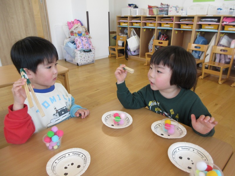 お家でお箸使ってるよ!という子もいれば、もちろん初心者も