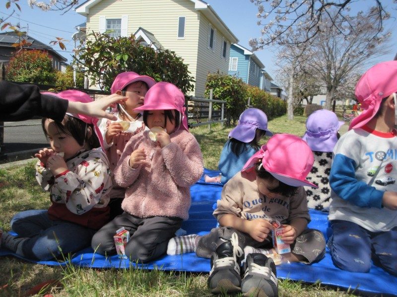 暖かな日差し。満開の桜。春の匂い。子ども達の笑顔。とっても楽しいお花見散歩となりました😊🎵