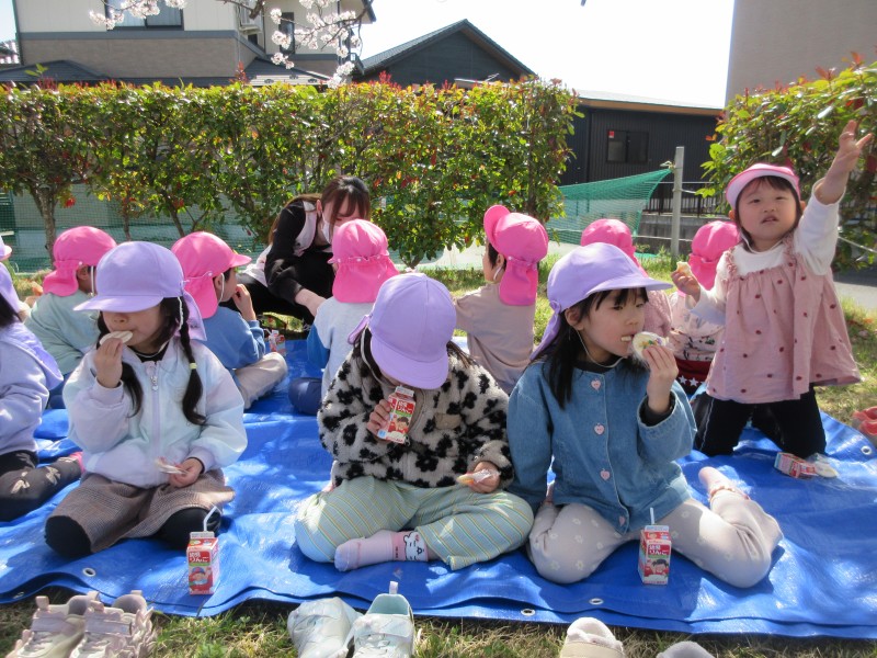 「桜の下で食べるっていいなぁ🎵」というカワイイ声も🥰🥰