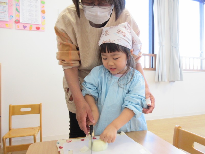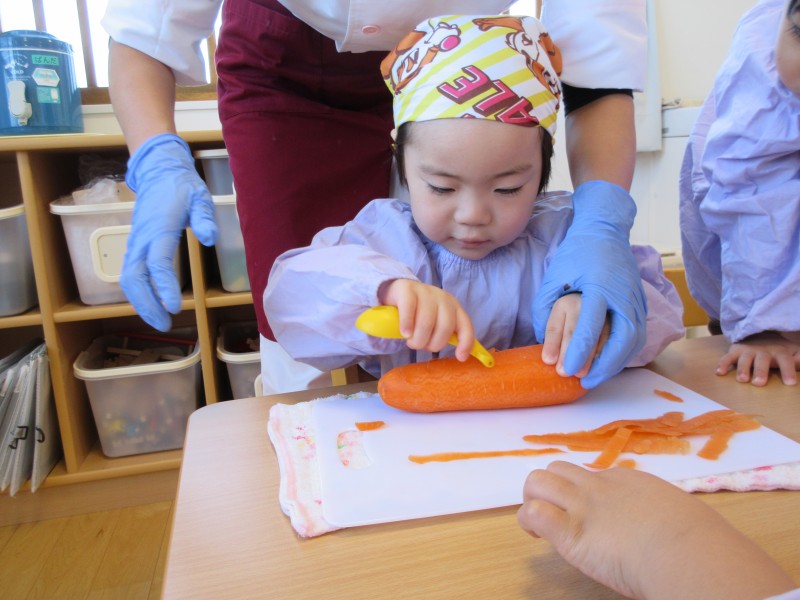 毎日「やってみたい」がいっぱいの、ぱんだ組さん。今月の食育は