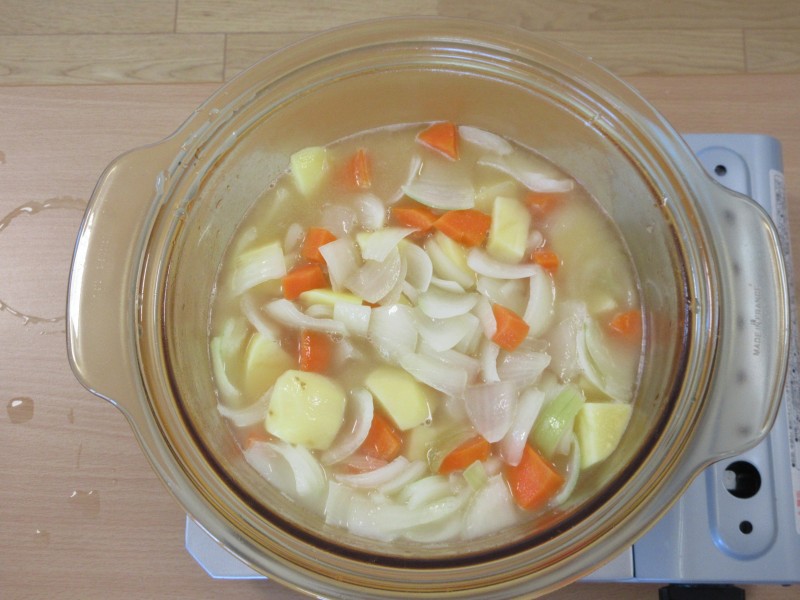 お鍋の野菜が柔らかくなったところで、そろそろ主役のカレールーを