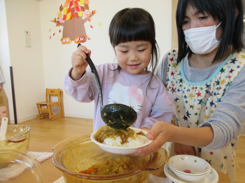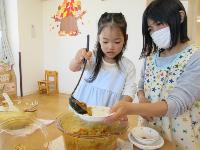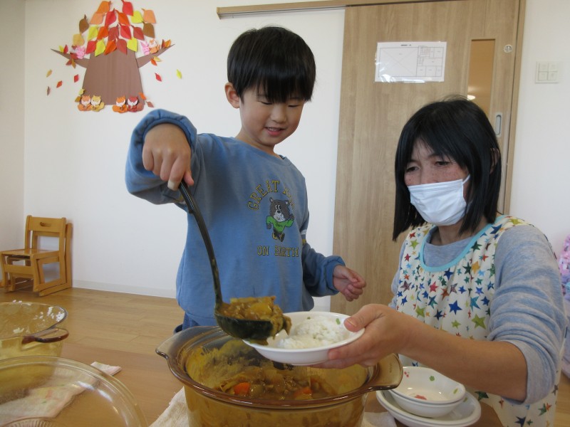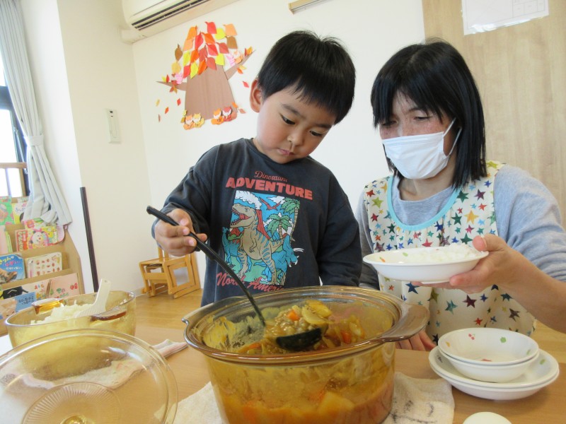 出来ました👏👏👏大盛カレー!なんて言いながら盛り付ける子もいま