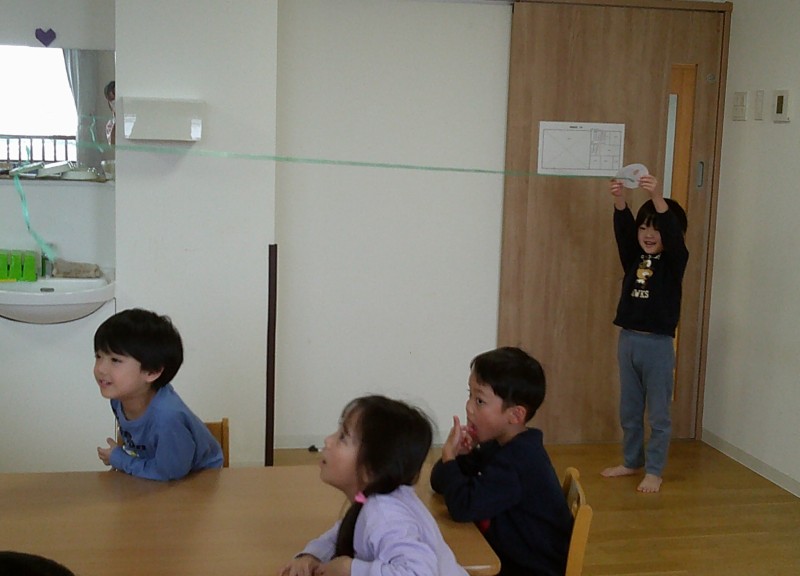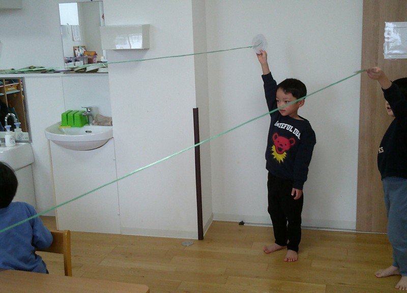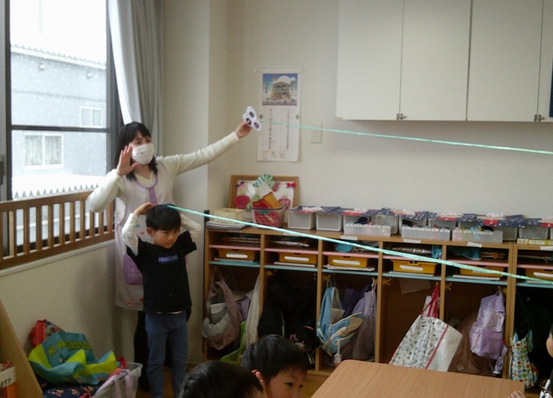 こちらは、きりん組さんが書いてくれた線を使ってケンケンパをして