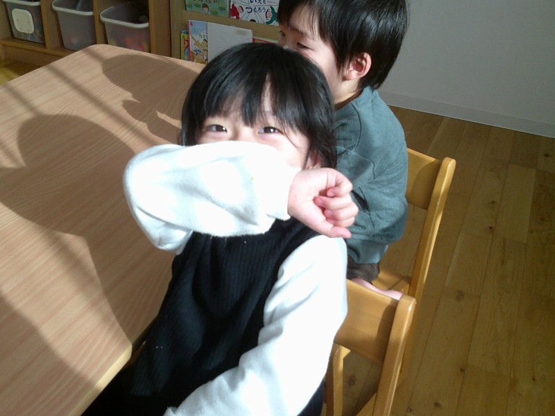 お部屋ではというと・・・。微細遊びの準備をしていると、「ねぇ