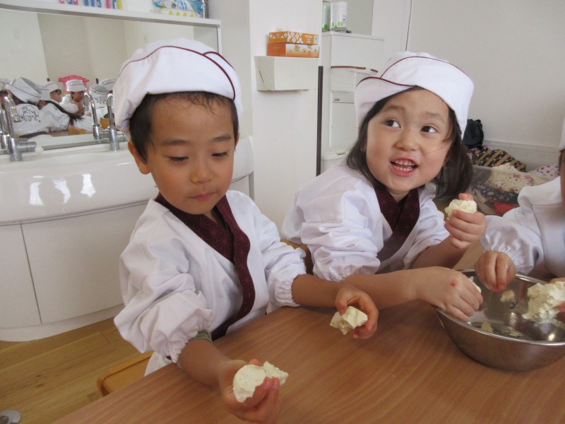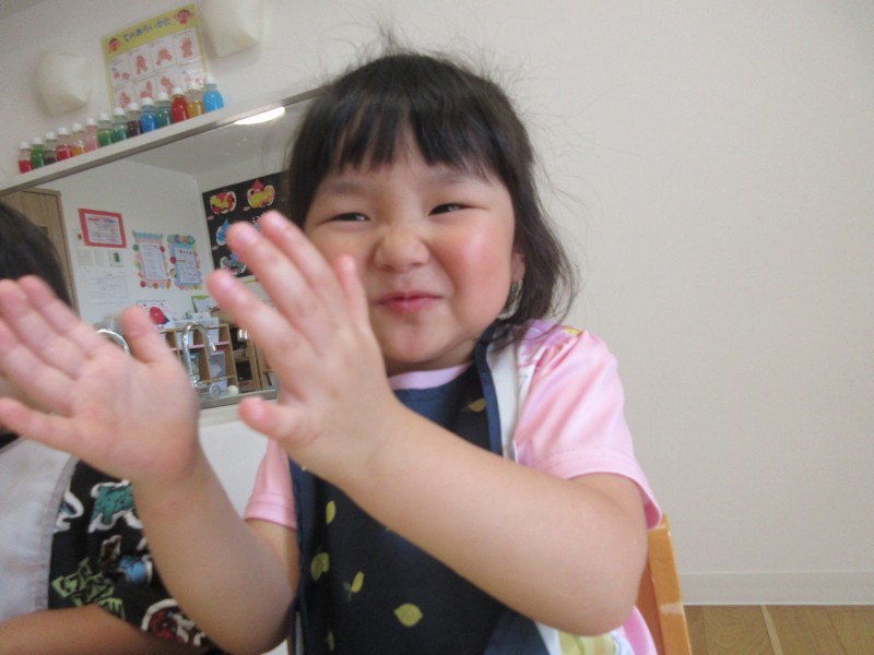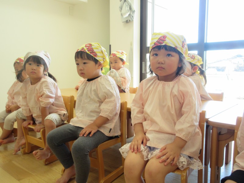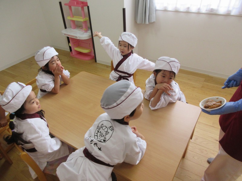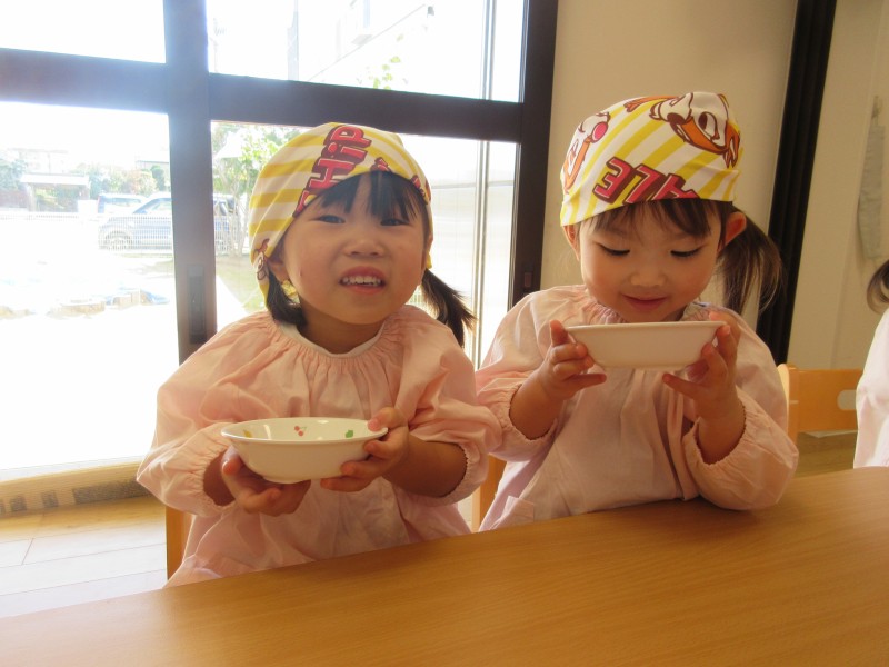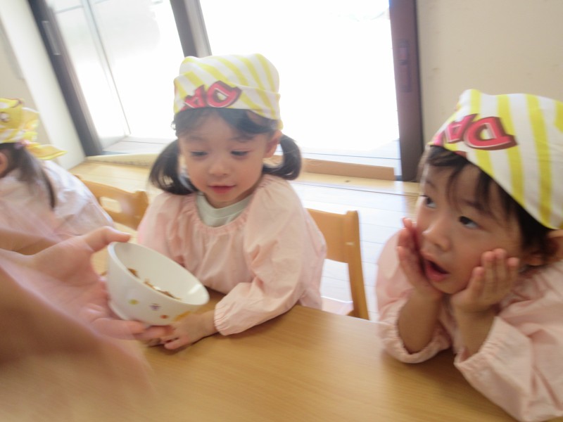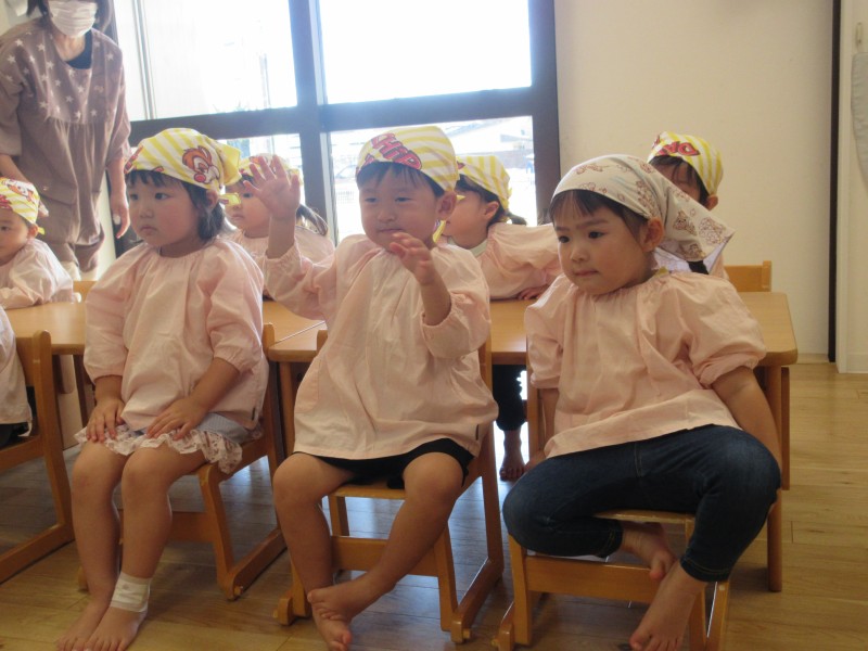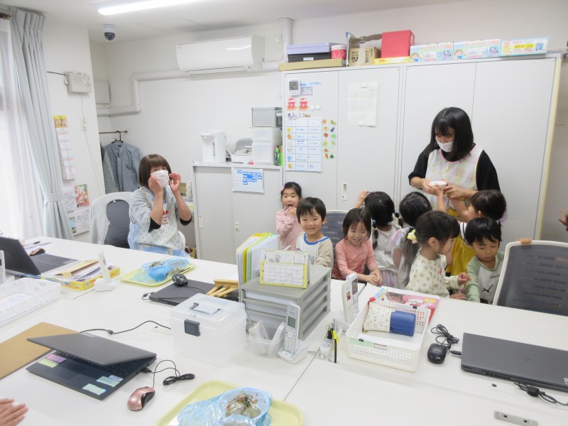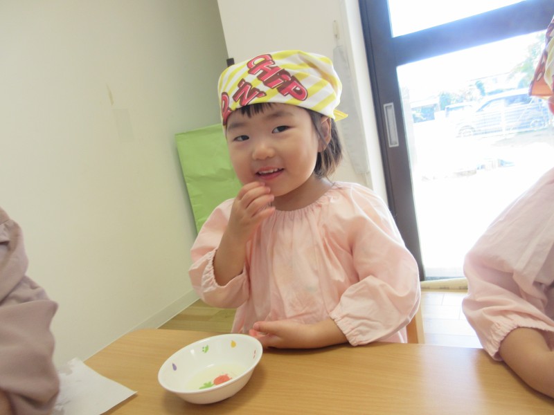 「出来ました♪給食で食べようね!」と聞くと、拍手喝采で喜ぶ子どもたちでした✨