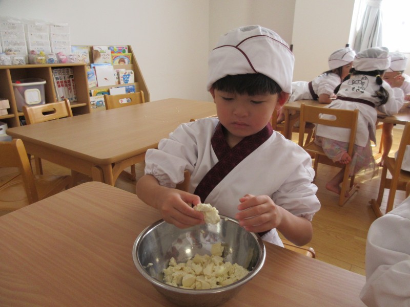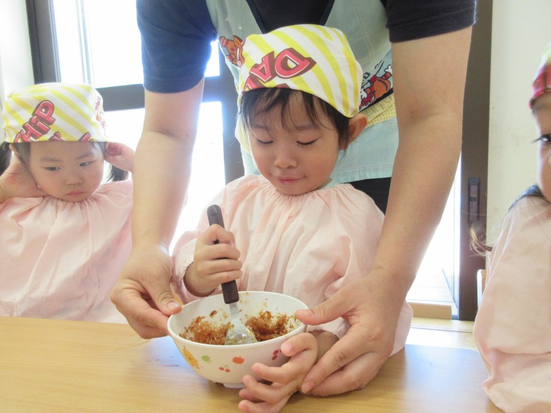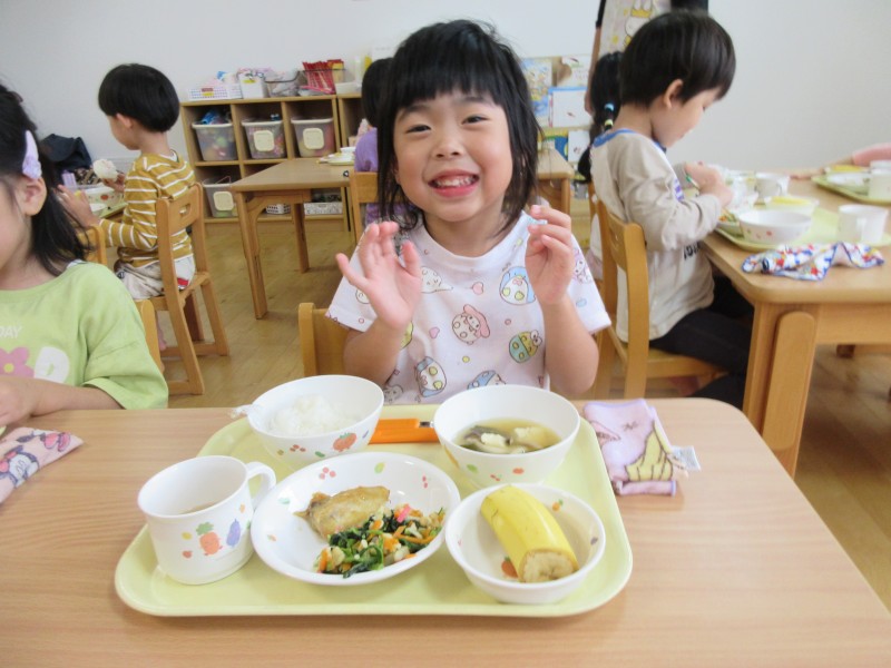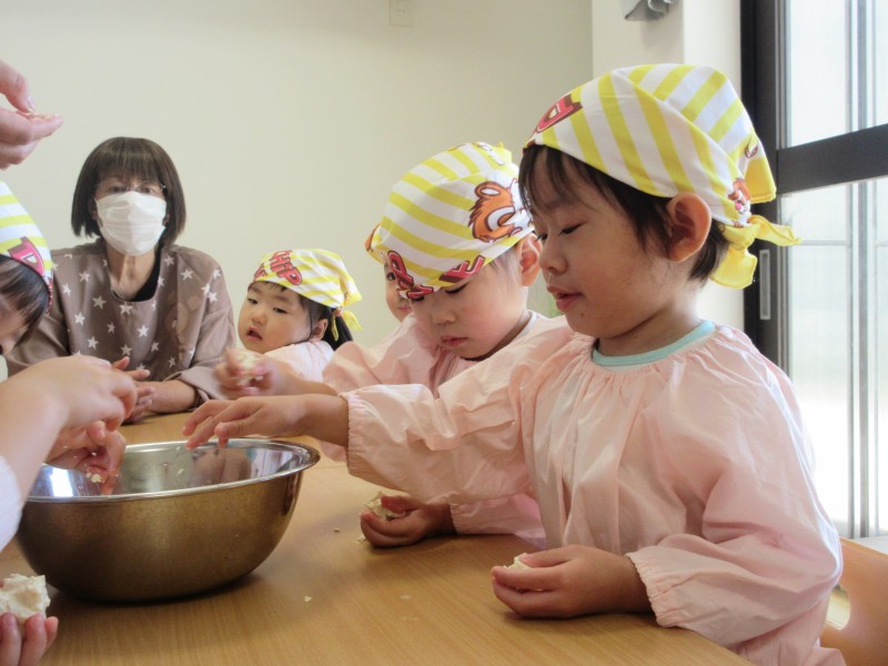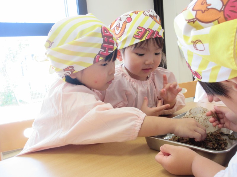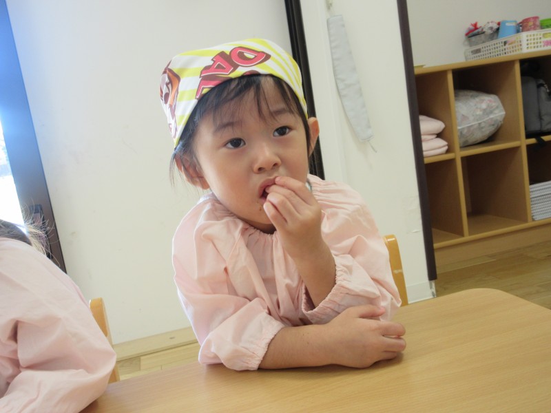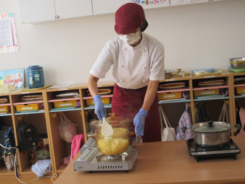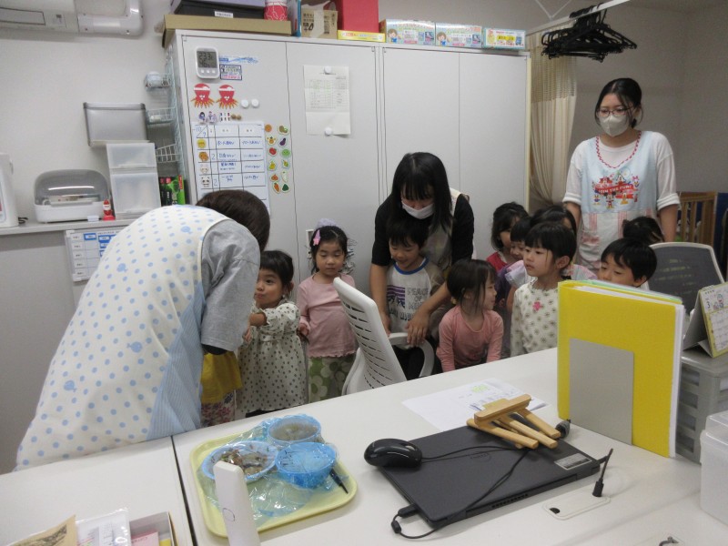 「出来ました♪給食で食べようね!」と聞くと、拍手喝采で喜ぶ子どもたちでした✨