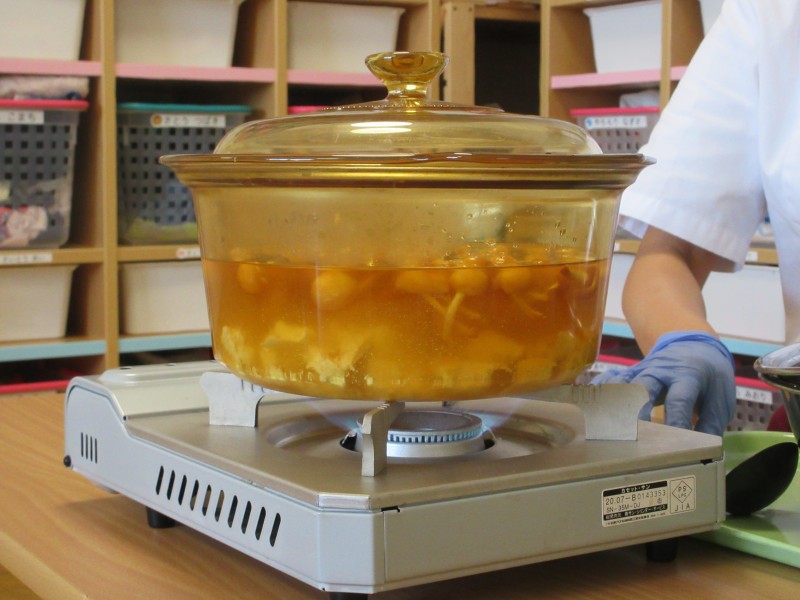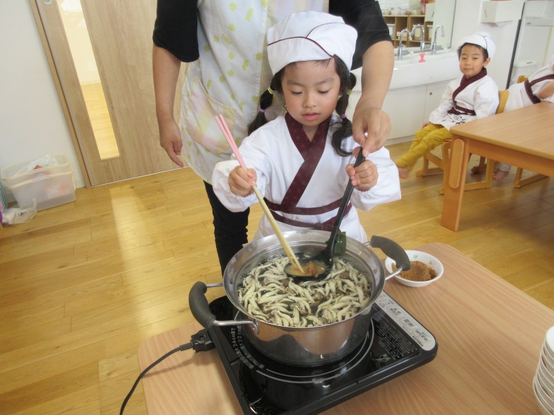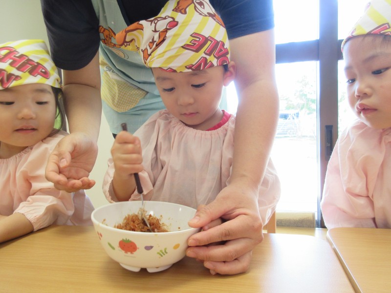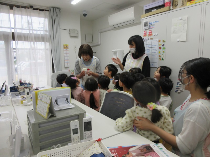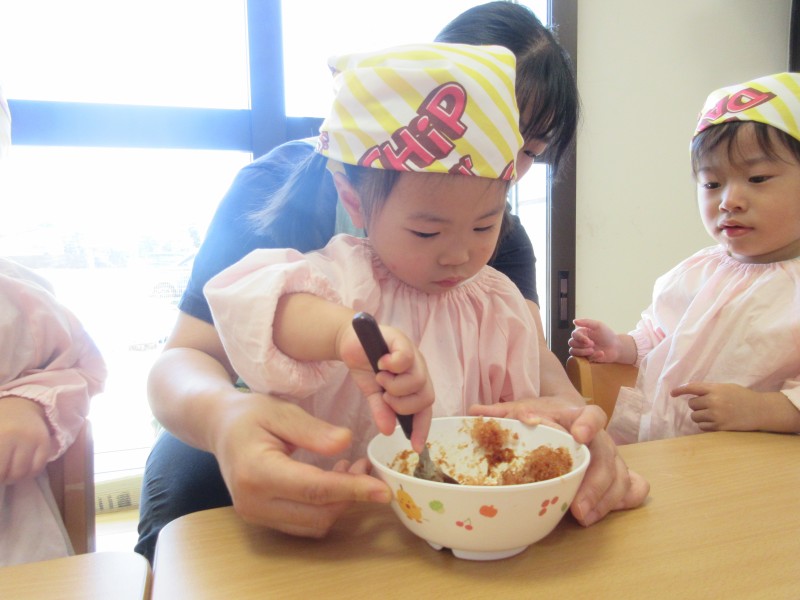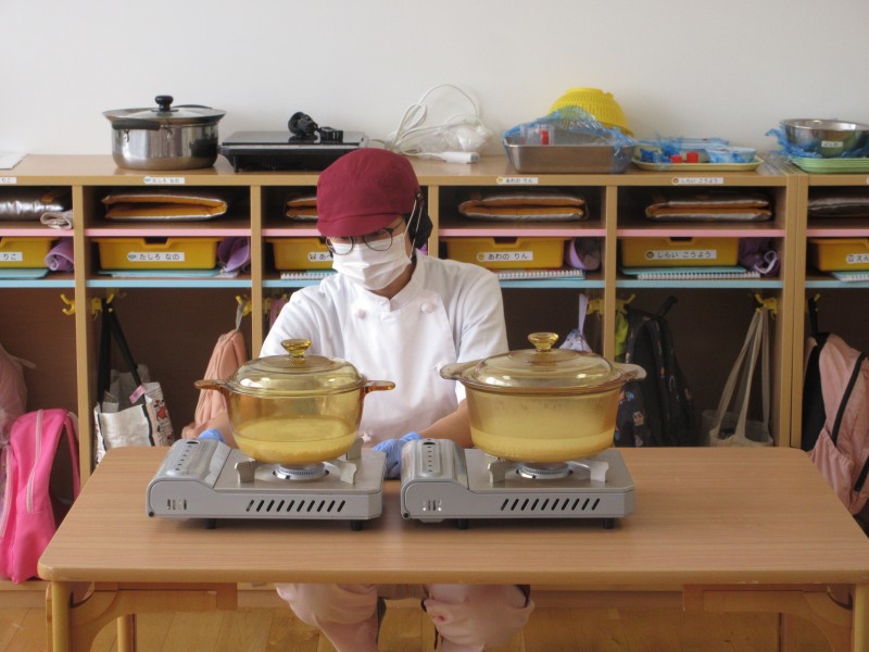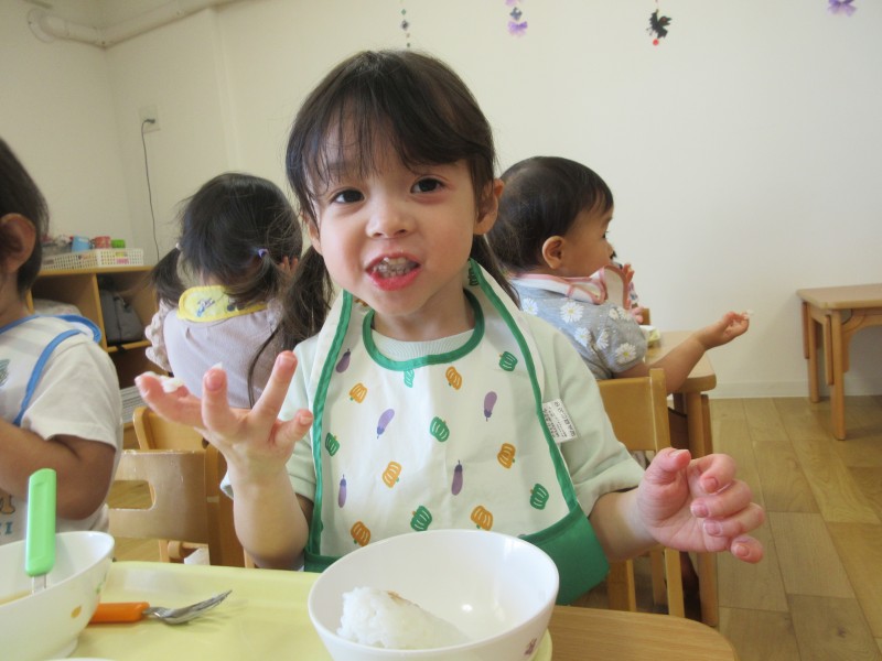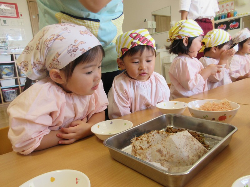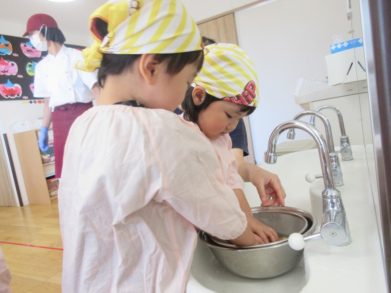 「出来ました♪給食で食べようね!」と聞くと、拍手喝采で喜ぶ子どもたちでした✨