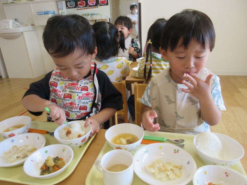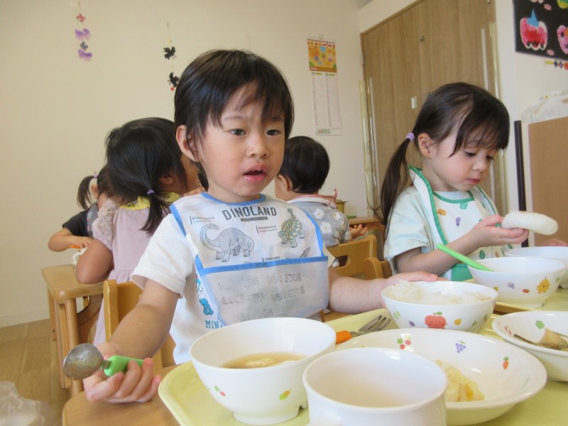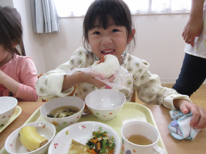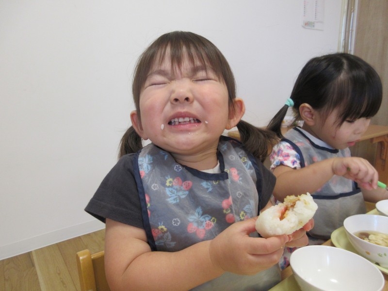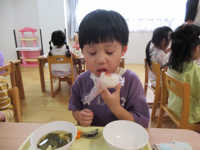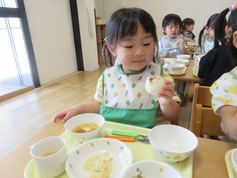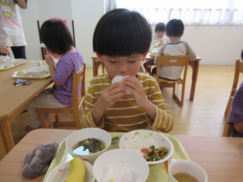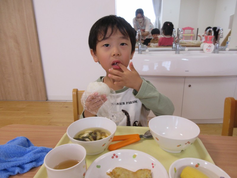先日レクリエーション大会で美味しい新米のおにぎりを楽しんだ子どもたち。