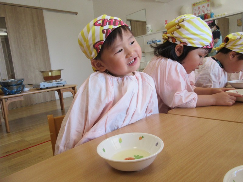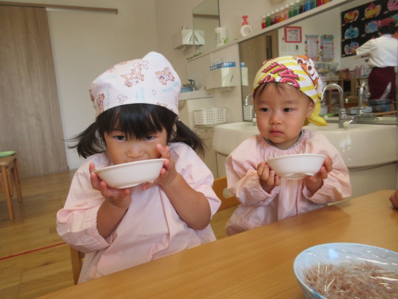 鰹節と昆布のうまみにニンマリ笑顔の子どもたちでした😋