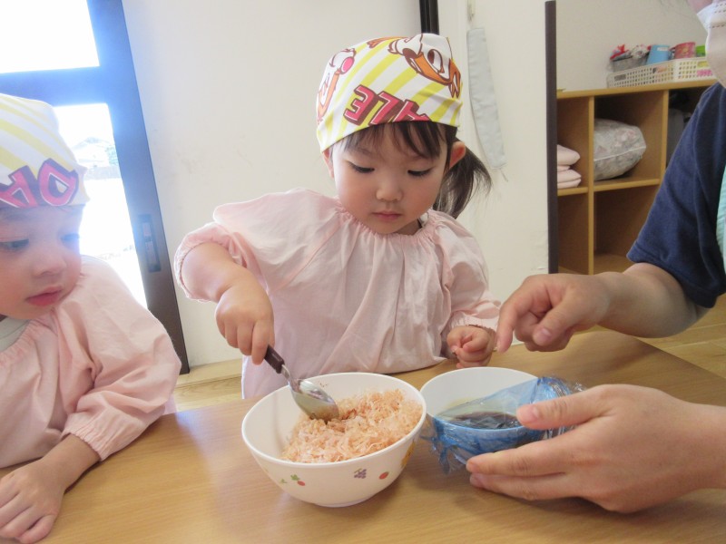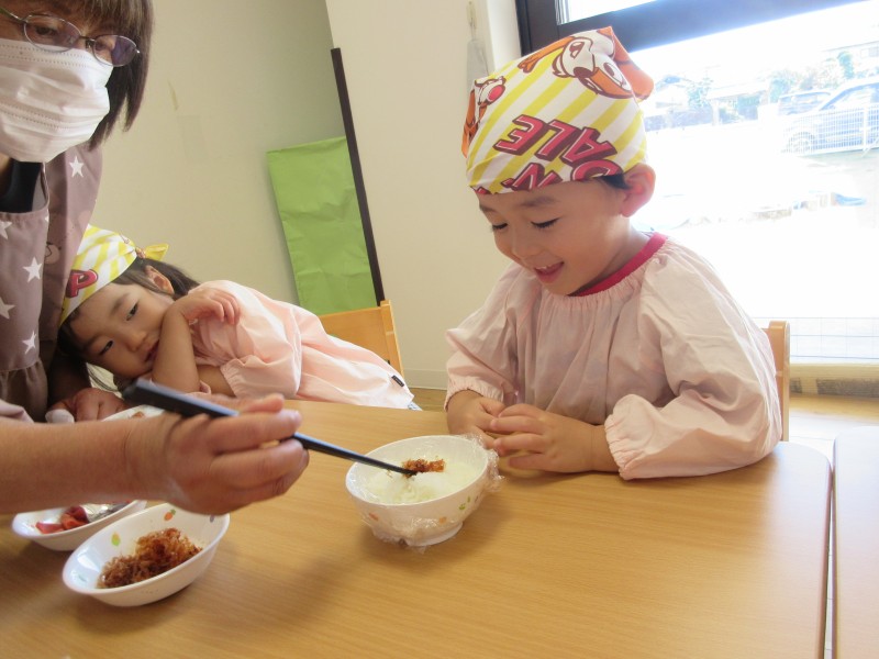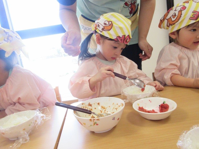 ほとんどの子が「どっちもにする!」「うめぼしも!」と選んでいました😊