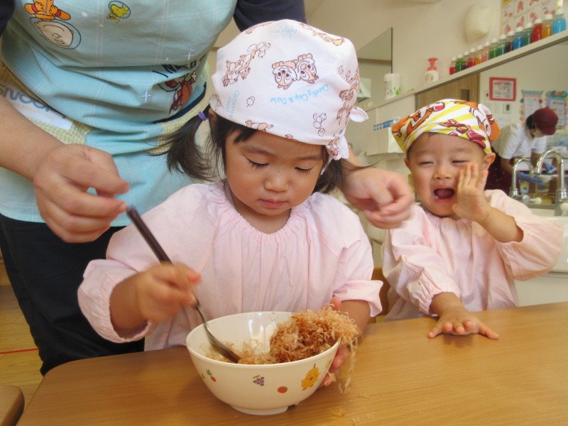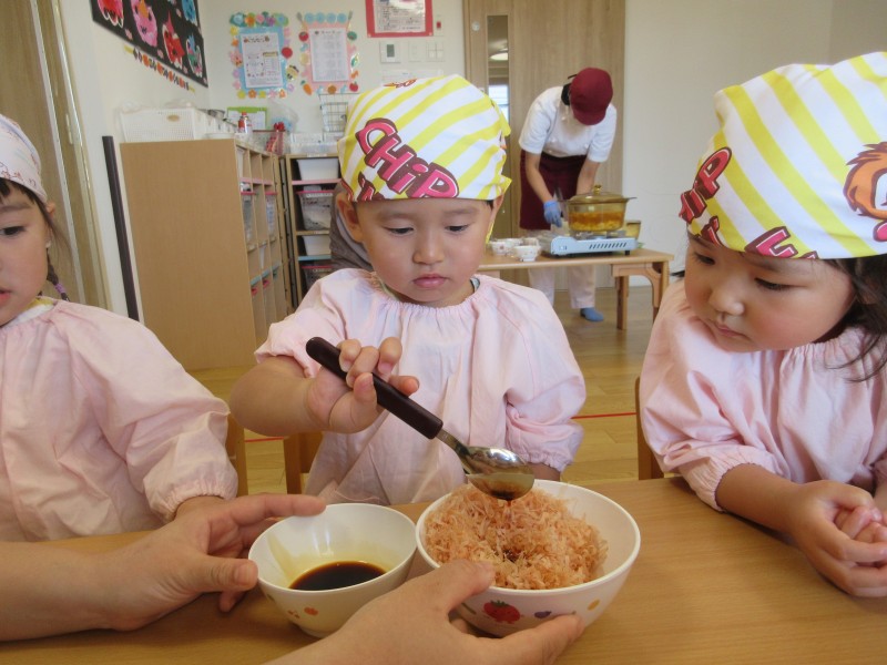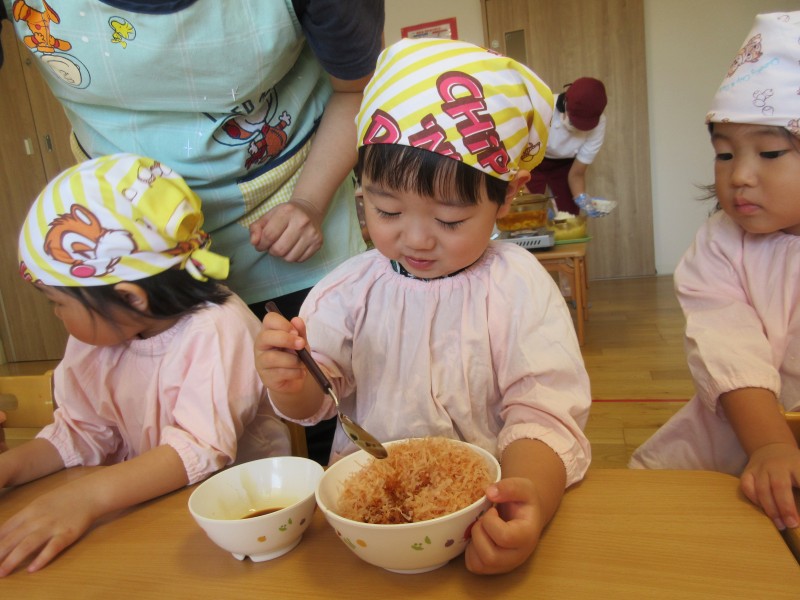 「さっきも見た鰹節とお醤油を使っておかかを作るよ♪」