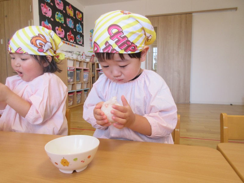 おにぎり作りも2回目なので、あっという間に握って完成させていました✨