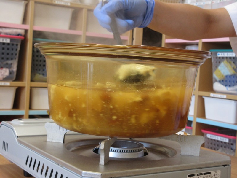 味噌が溶かれた鍋の中は「茶色に変身した!」とびっくり!