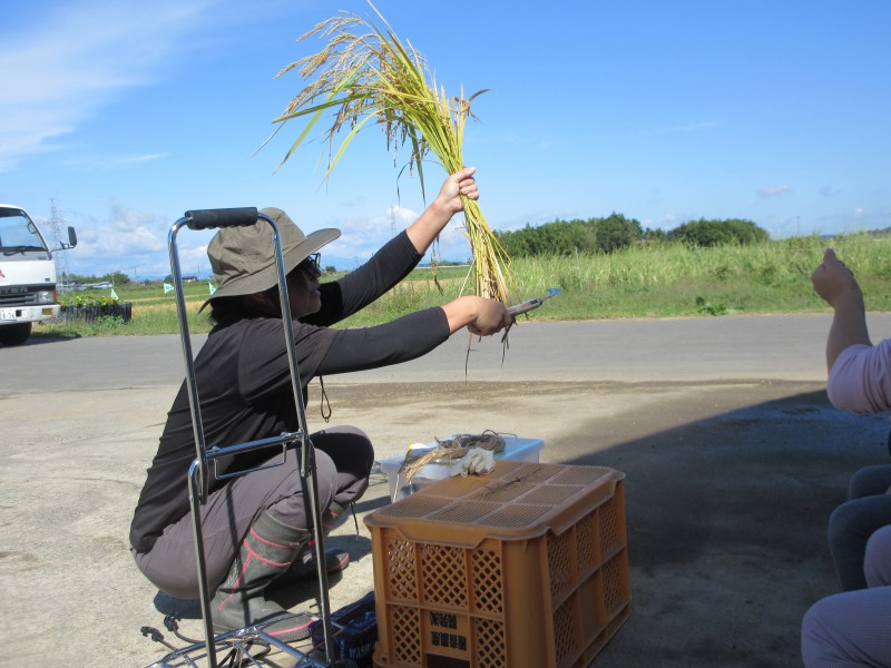 小野寺さんに教えてもらいながら、一緒に鎌を握り、稲刈りに挑戦しました✨