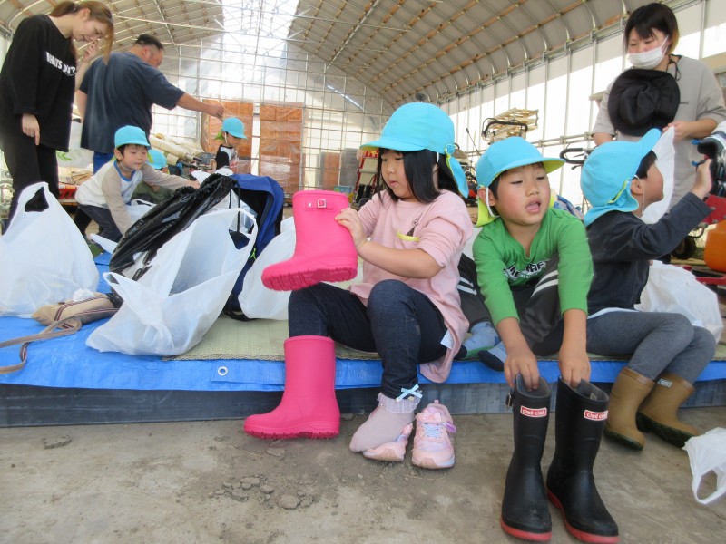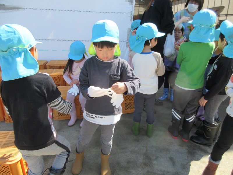 長ぐつを履いて、軍手をつけて・・・