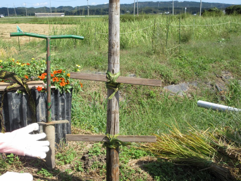 ちなみに、この日子どもたちが刈った稲は、現在事務室前のテラスで乾かし中・・・。