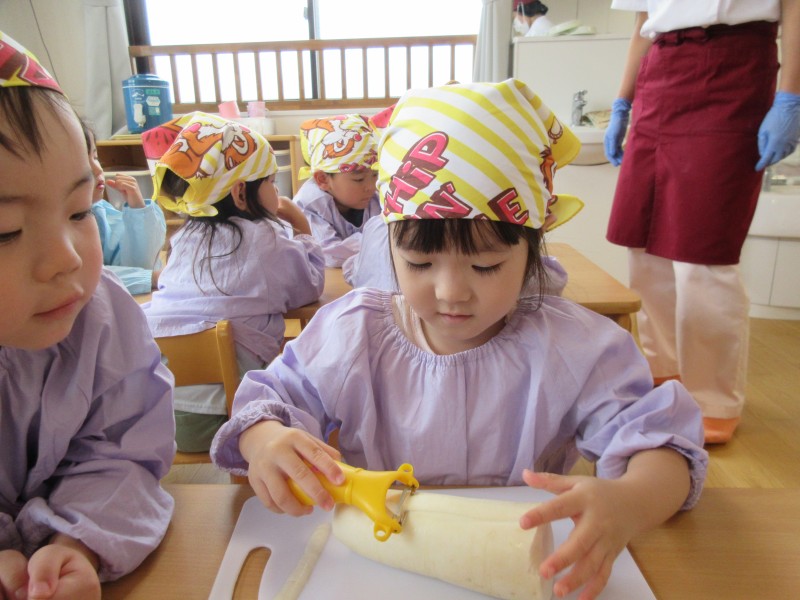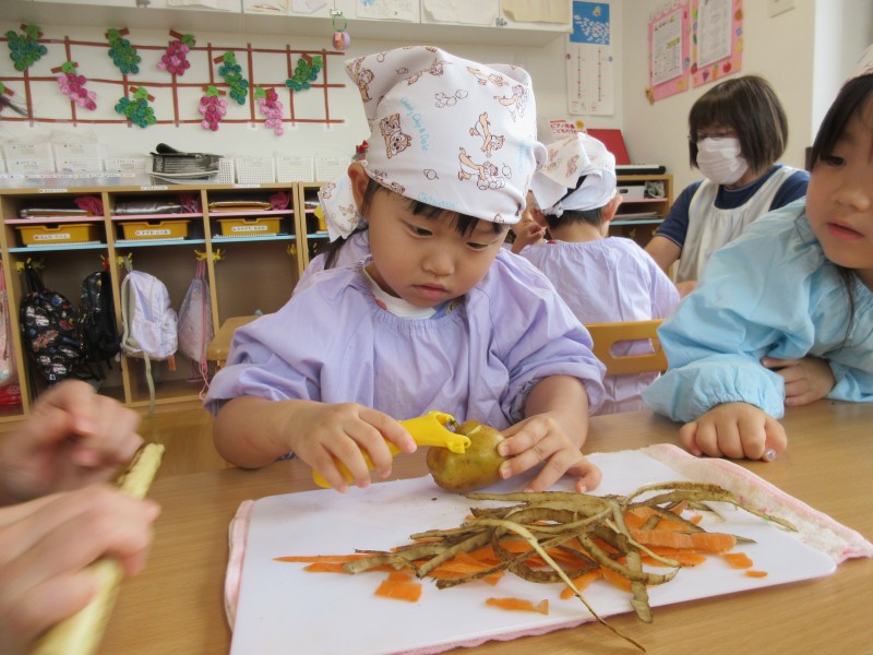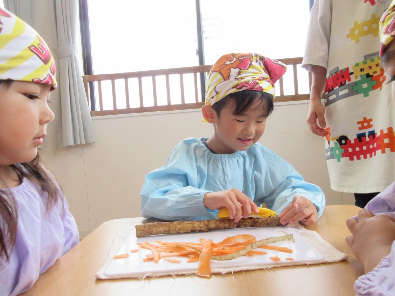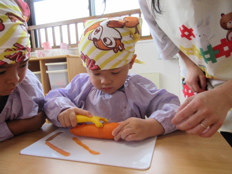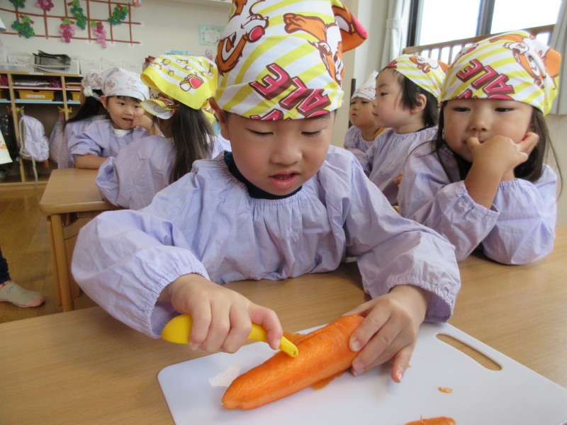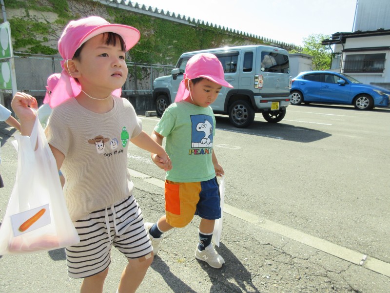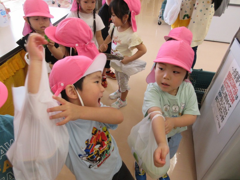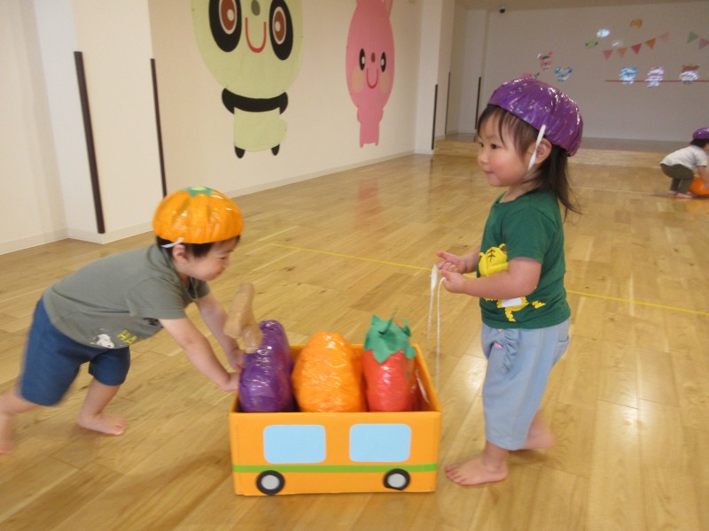お友だちと一緒に力を合わせて果物を運ぶ姿も…💕