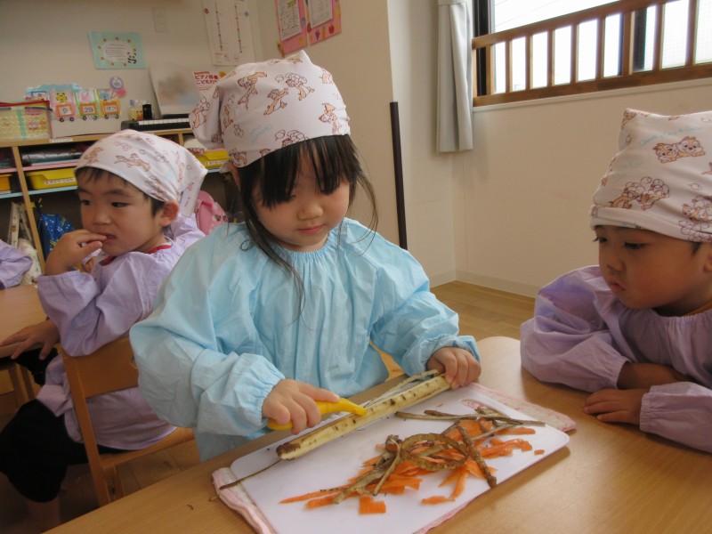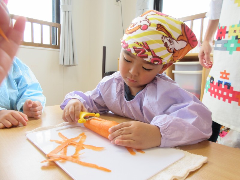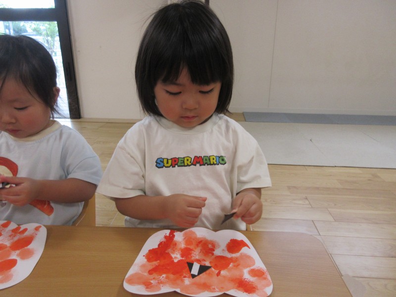 だいぶ指先が器用になってきて、目や口を貼ることが上手になってきました☺