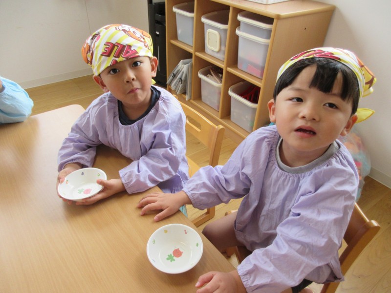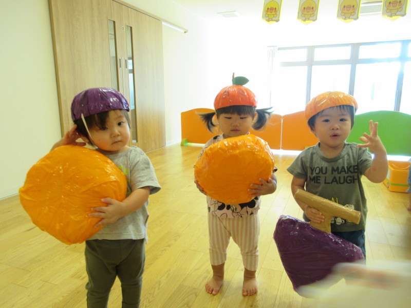 かわいいフルーツになりきるのが大好きなりす組さんです🍇🍓🍎