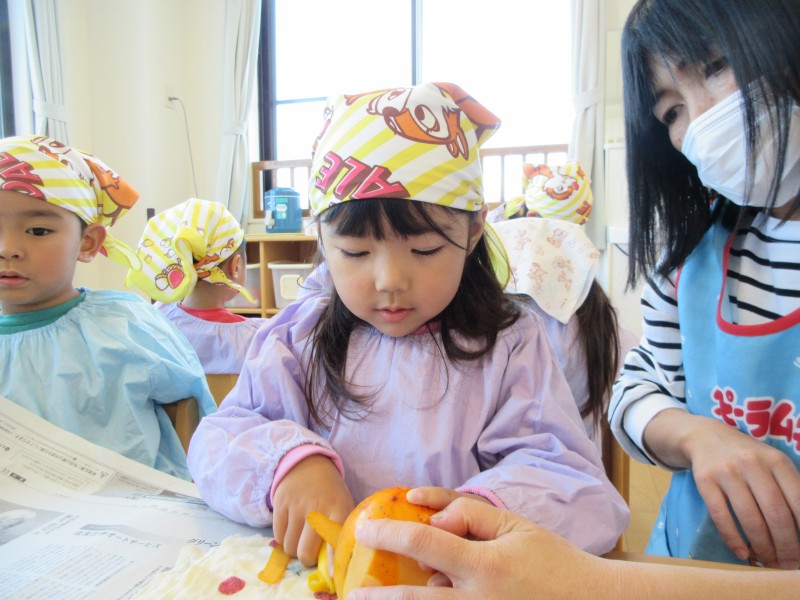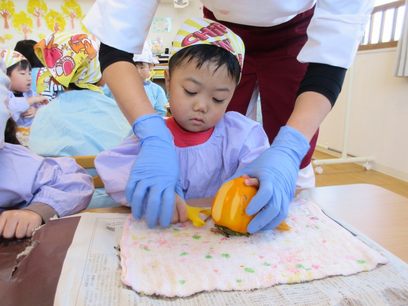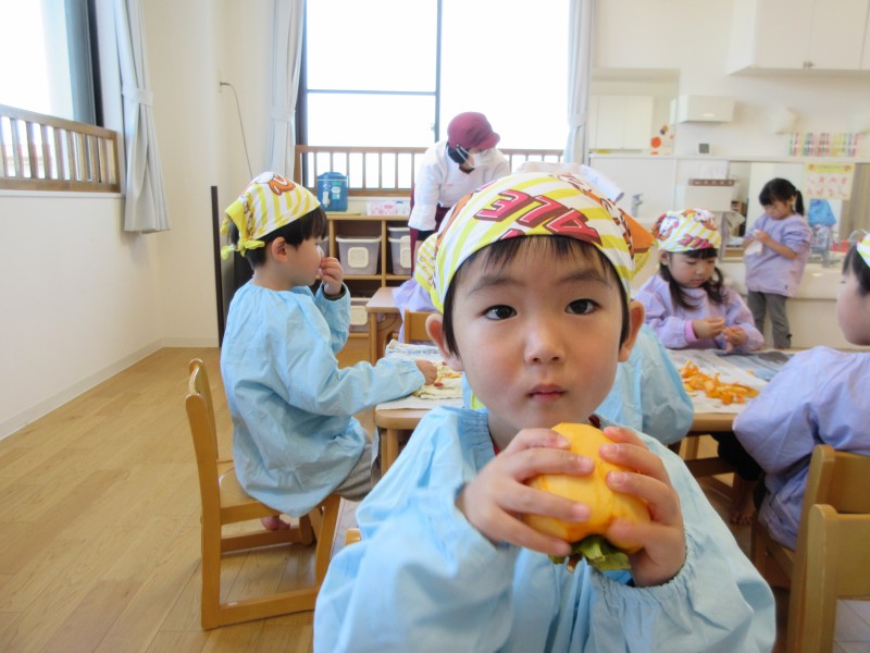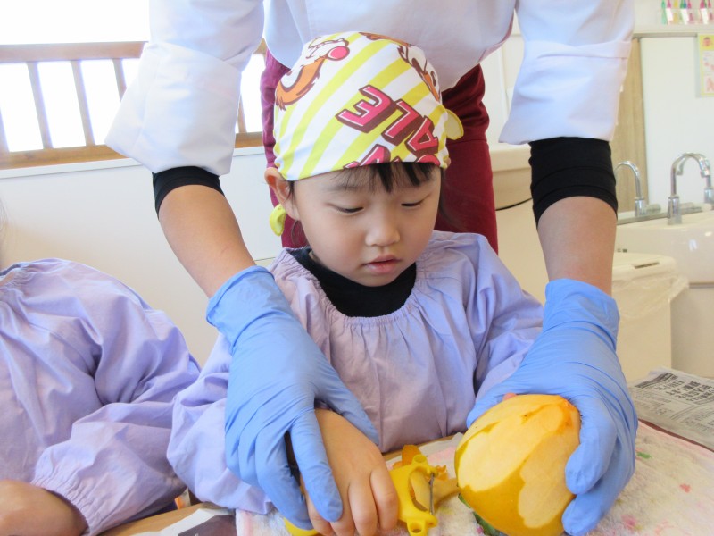 毎日「やってみたい」がいっぱいの、ぱんだ組さん。今月の食育は