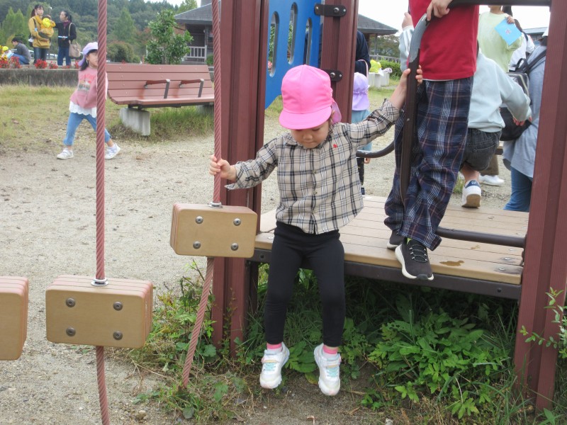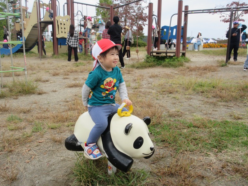 ぱんだ組さんは、カラーコーンを回って築山と砂場の間がゴールです🚩