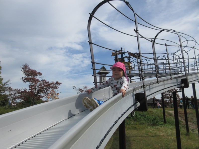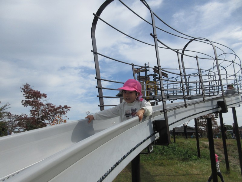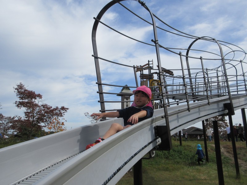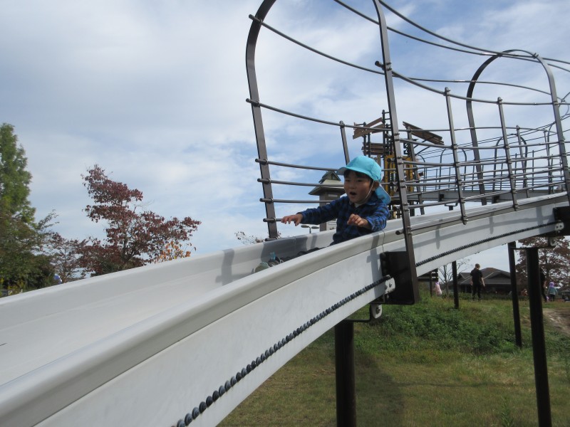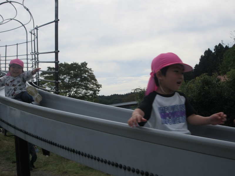 ぞう組さんは砂場とフェンスの間を抜けて、お山のまわりもぐるーっと回って