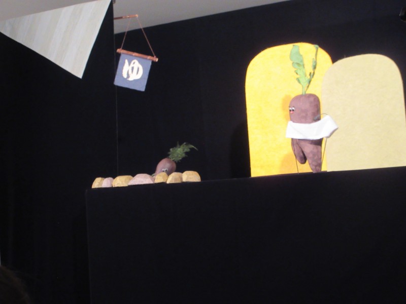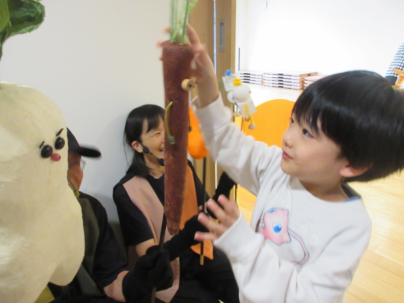 ぶら下がっている野菜の中から1つ、好きな物を選びます。