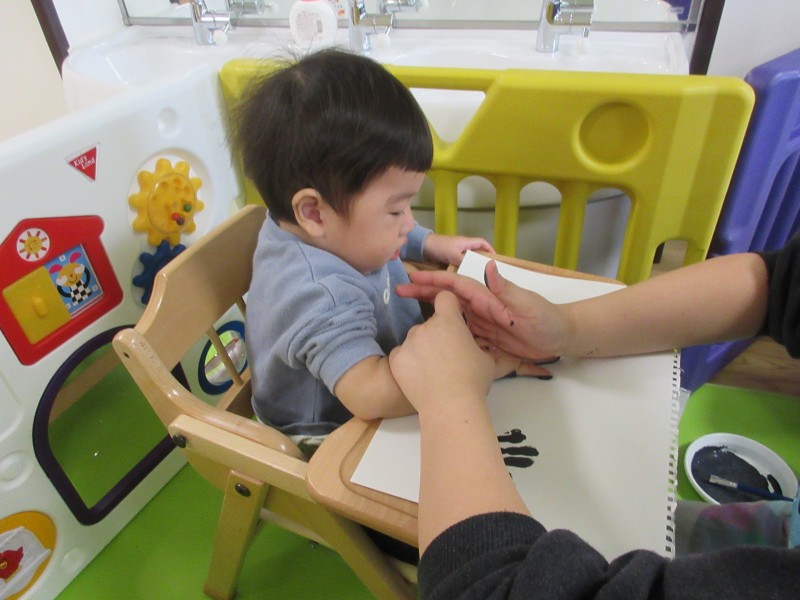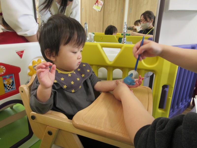 未満児さんはいろいろな場所で待っている先生を見つけて、シールをもらいました😄