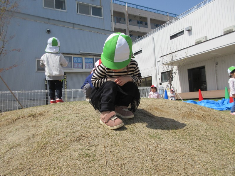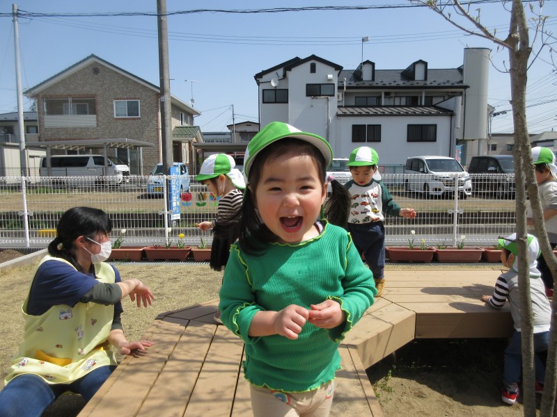 今日も良い天気!ということで、帽子をかぶり張り切って園庭へ!