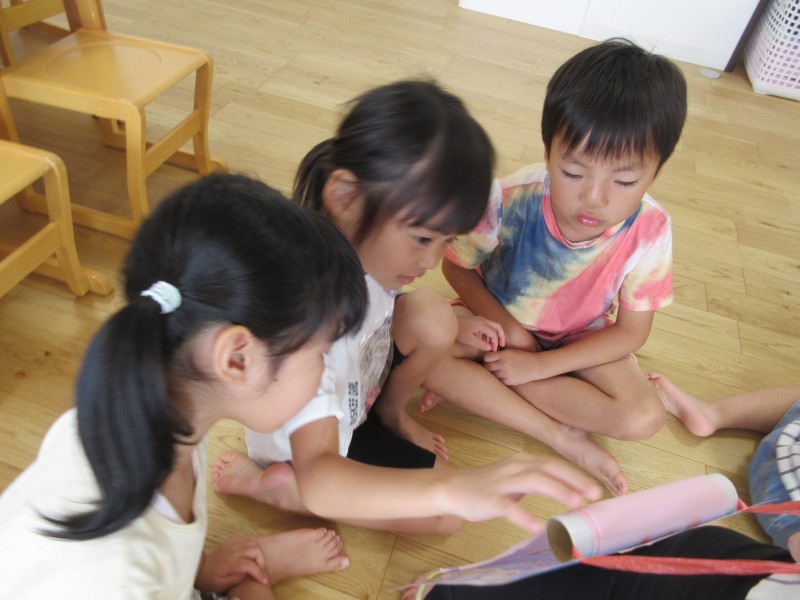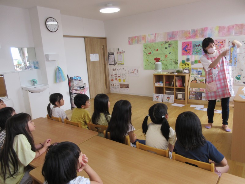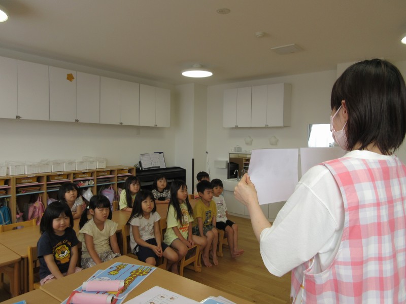 各クラスに、お尻の拭き方について載っている「じぶんでおしりふけるかな」の絵本を紹介しました