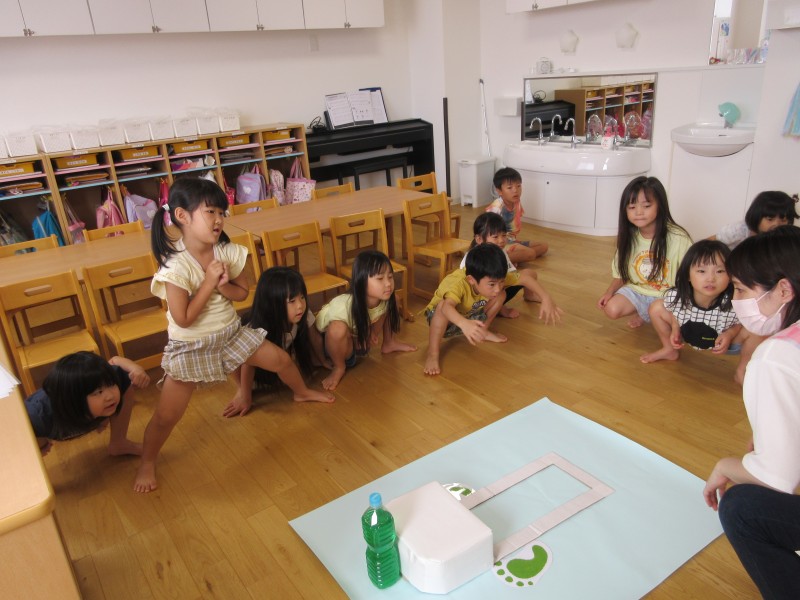 来年小学生になるきりん組さん🏫大崎市内の小学校にはまだ和式トイレもあるので、和式トイレの使い方も練習してみました![]()