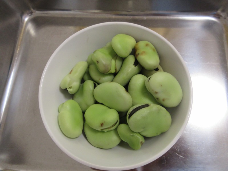初めてのそら豆のさやむき、とても楽しく出来ました♪