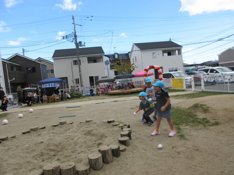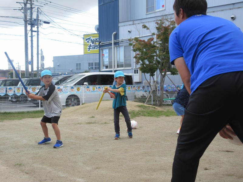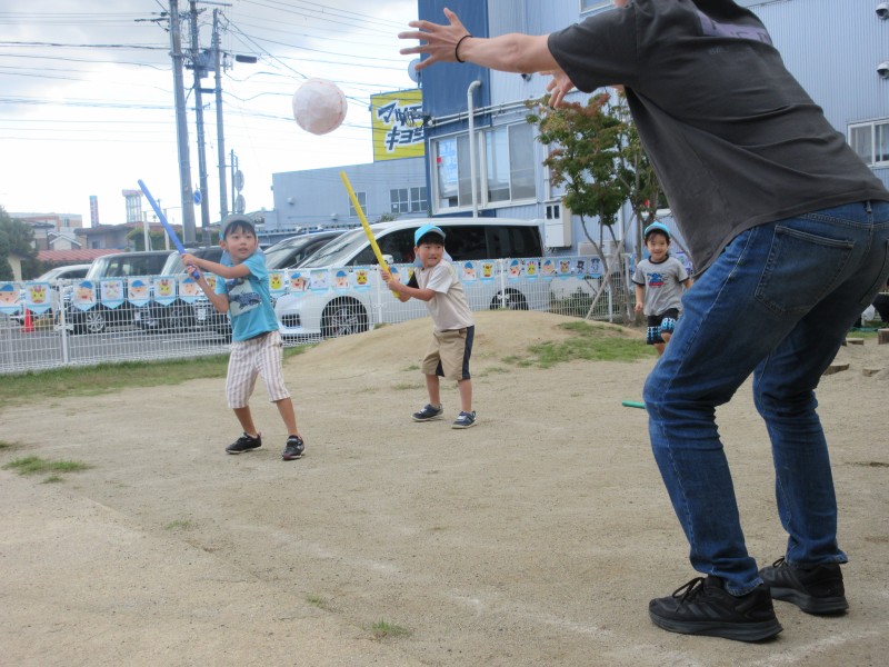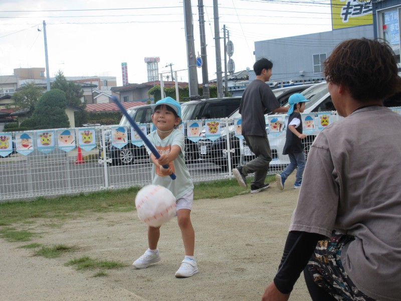 今度は子どもたちがバッターです!ねらいを定めて…めざせホームラン!
