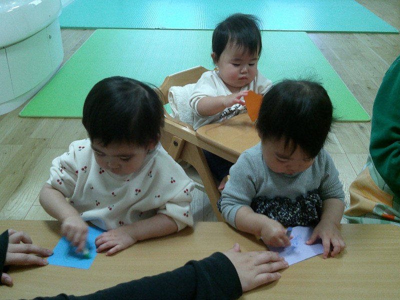 クレヨン🖍やシール貼りも慣れてきました😊🎵