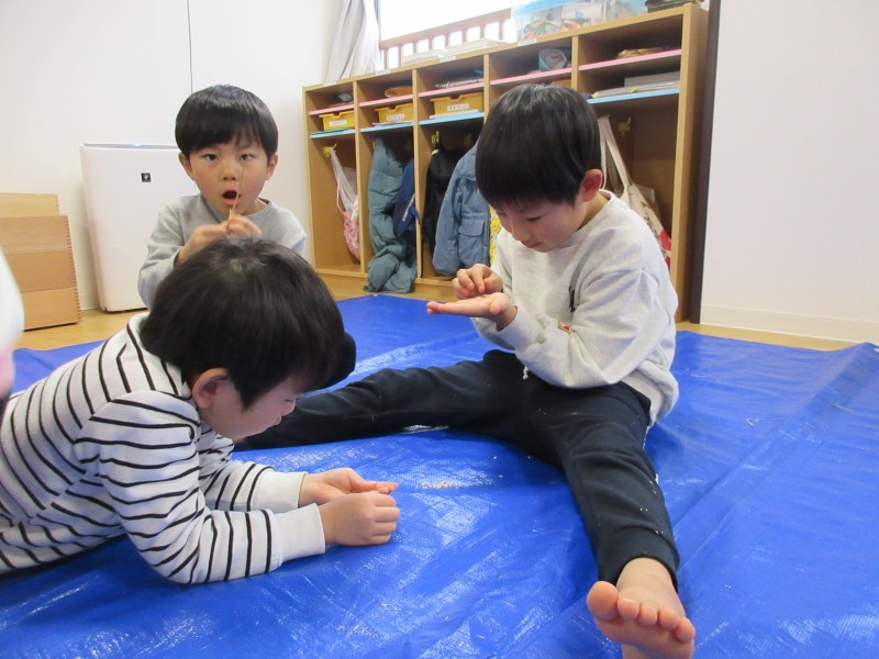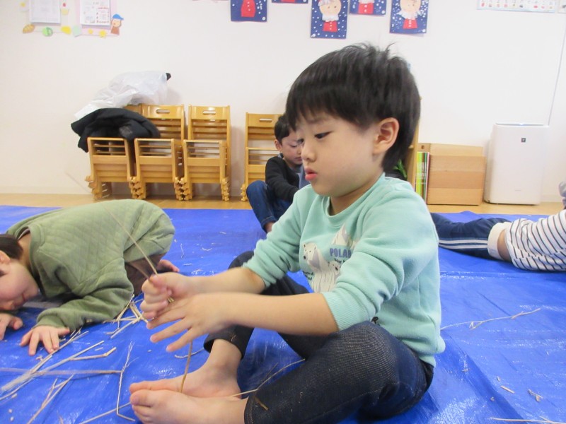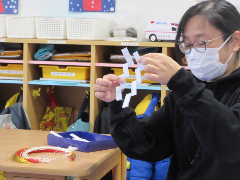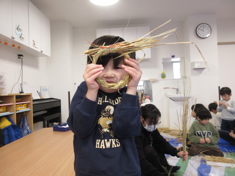お正月飾りを作った後は…「小野寺さんと同じようにやってみよう」「こうかなぁ🙁🙁💦」