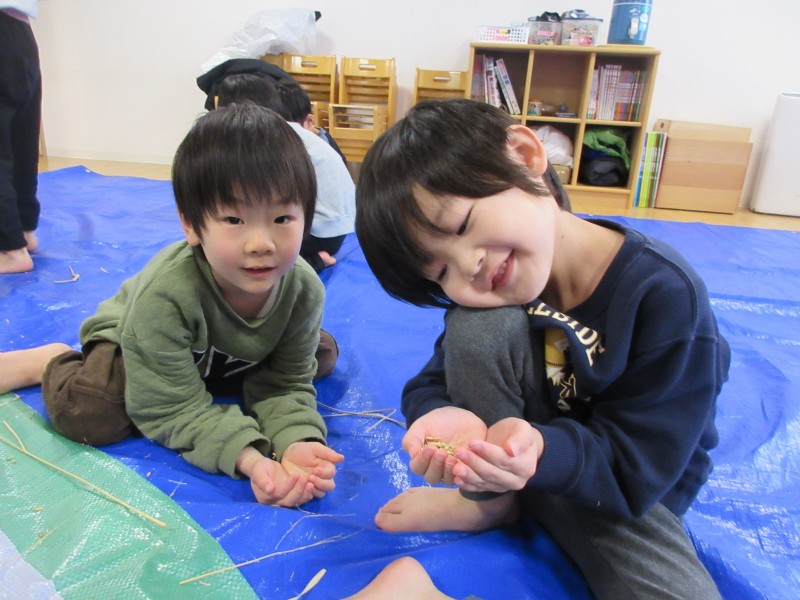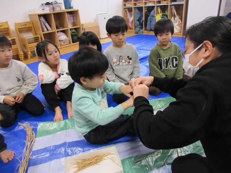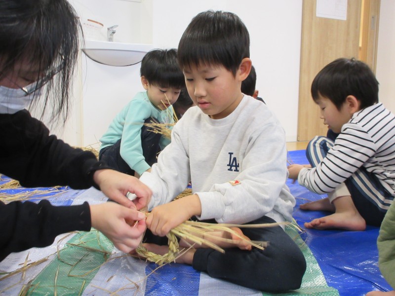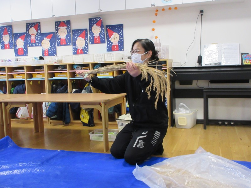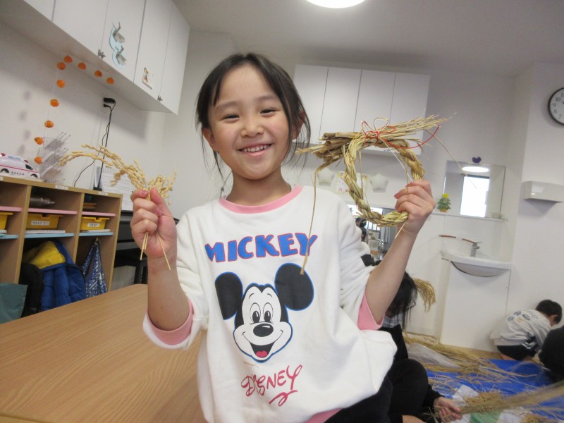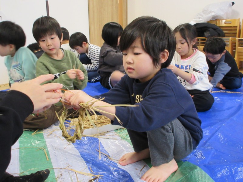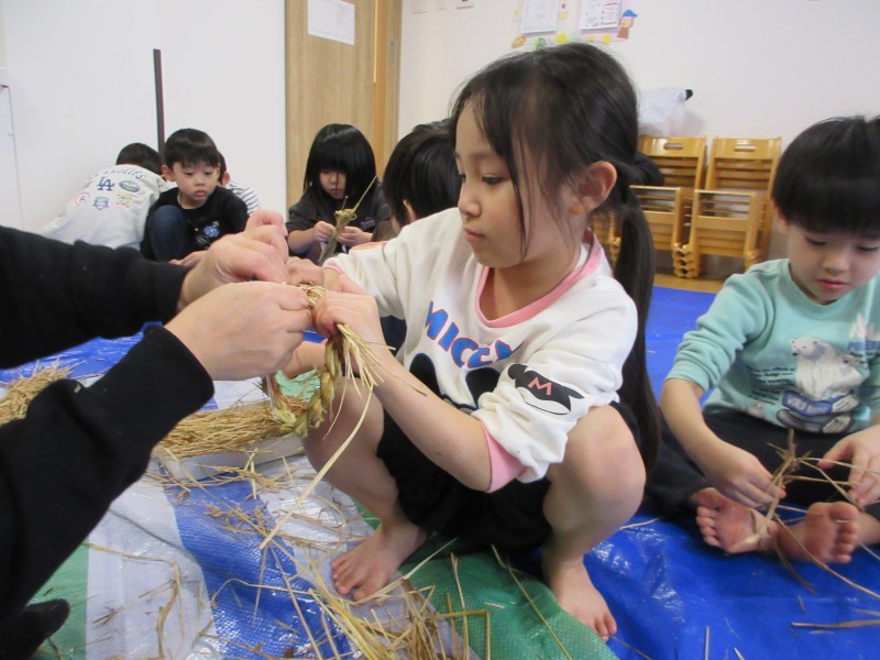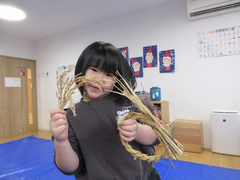素敵なお正月を迎える準備として、年末に、雁音米の小野寺さんに来園していただき、お正月飾りを作りました。