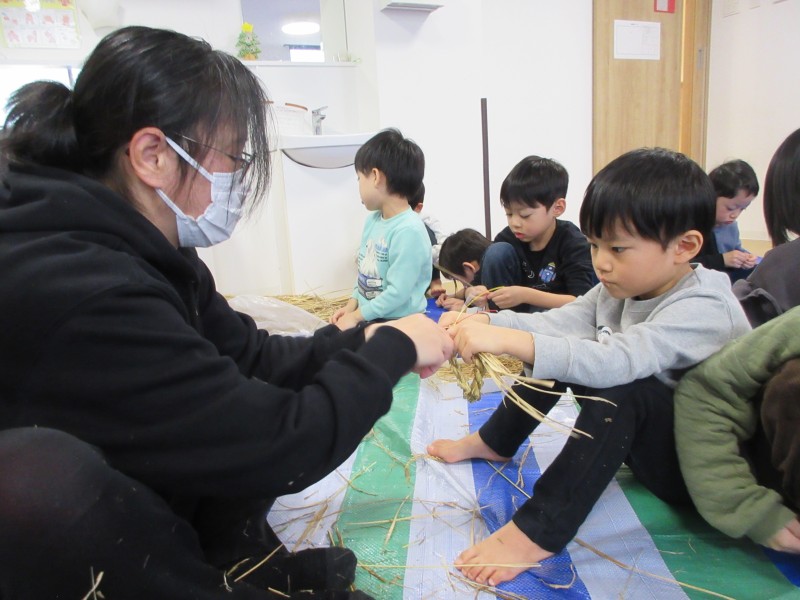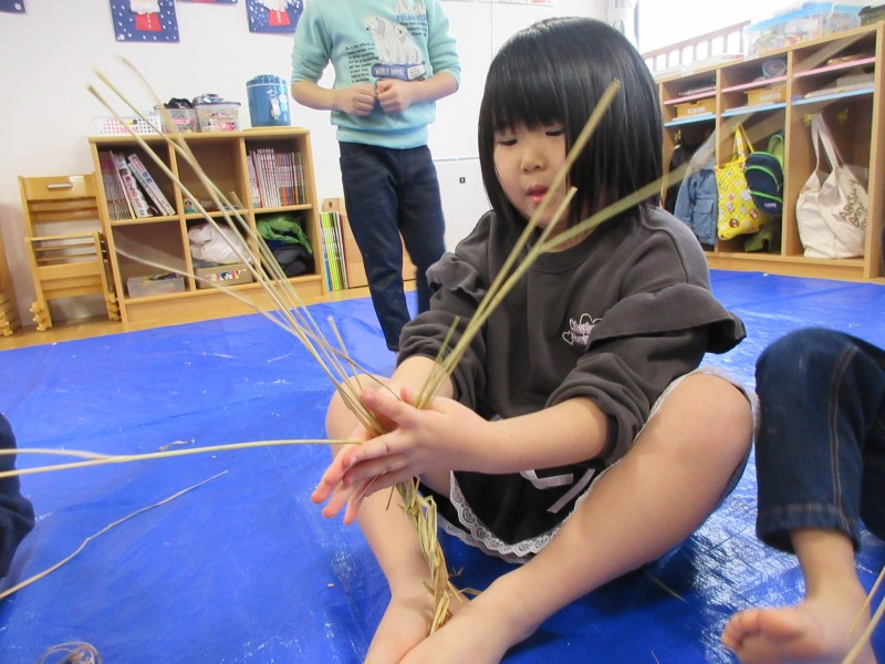 「では、このわらを使って、神様をお迎えする準備をしましょう😊」
