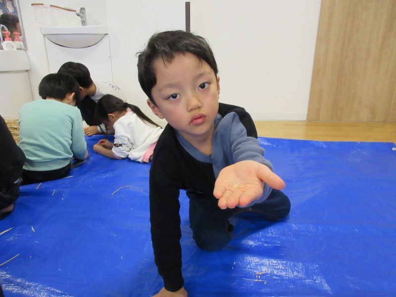 「これ、ゴシゴシしたらお米になるかな😐❓」「あ‼️お米が出てきたぁ❣」